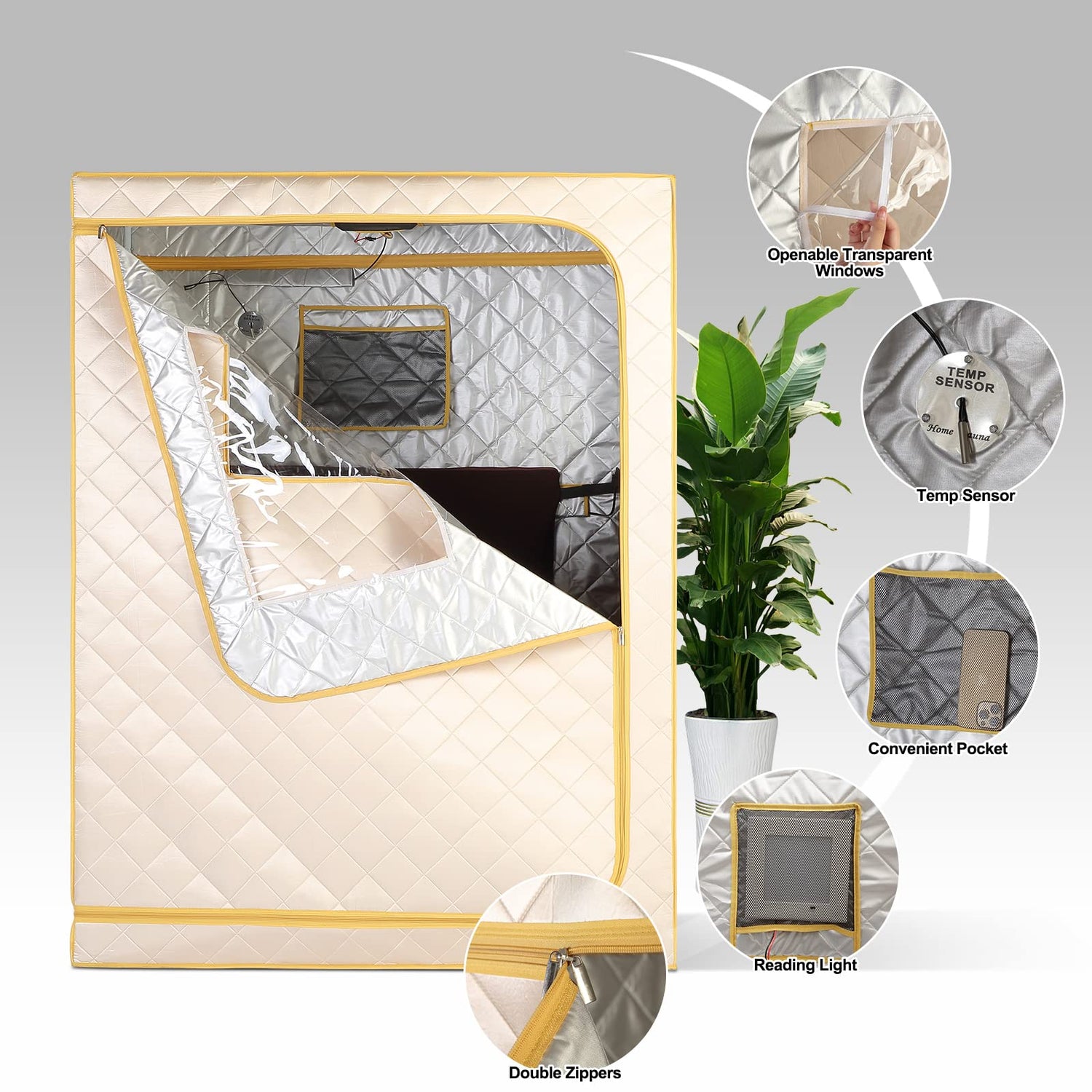 - 【New Design】Three transparent windows design gives you an whole open view, and the front removable window can be opened directly to breathe fresh air when you feel uncomfortable, LED reading lamp allows you read when you enjoy the sauna spa, double sided zippers for easy access in and out without difficulty