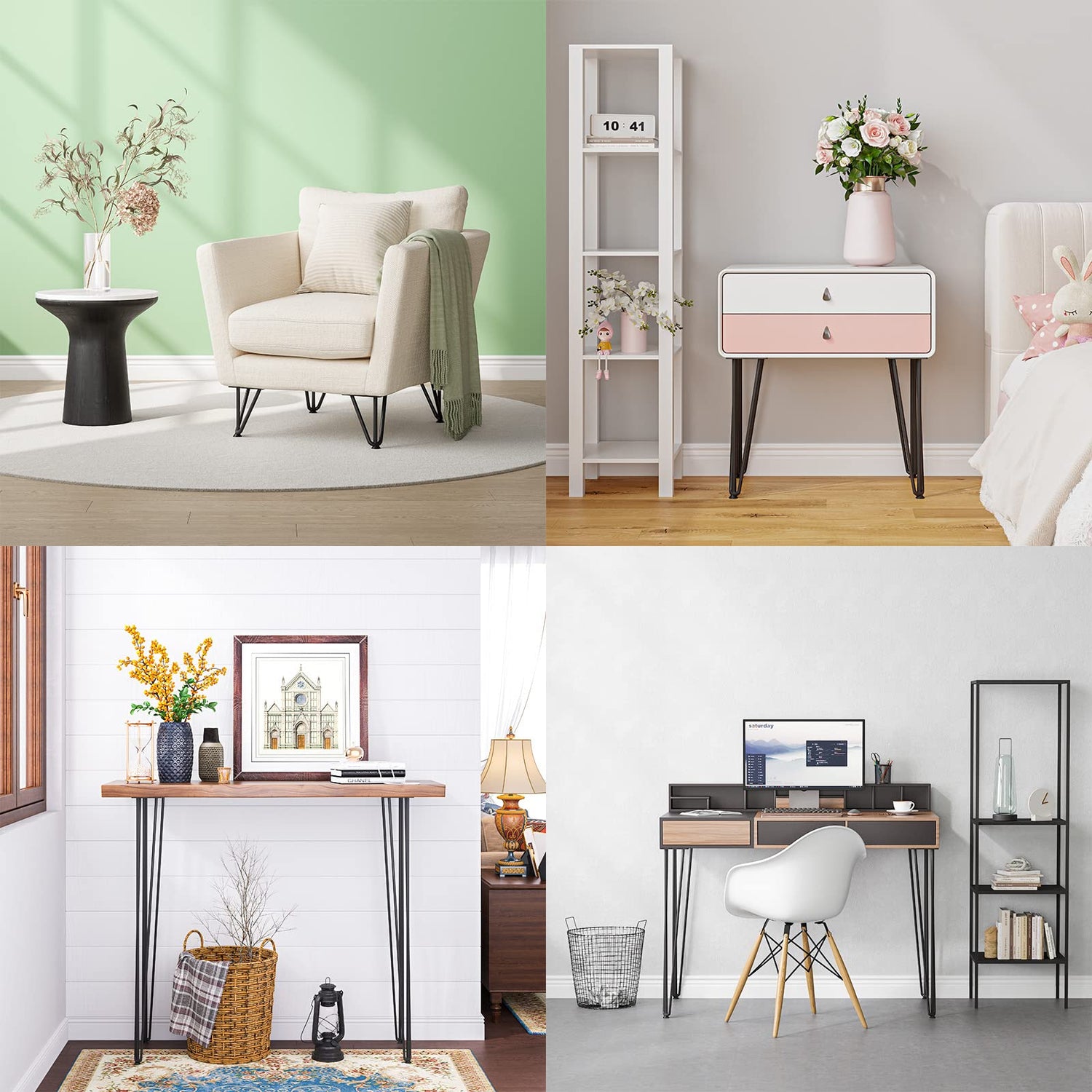 Details: Hairpin Furniture Legs, Metal Home DIY Projects for Nightstand, Coffee Table, Desk, etc with Rubber Floor Protectors Black 4PCS