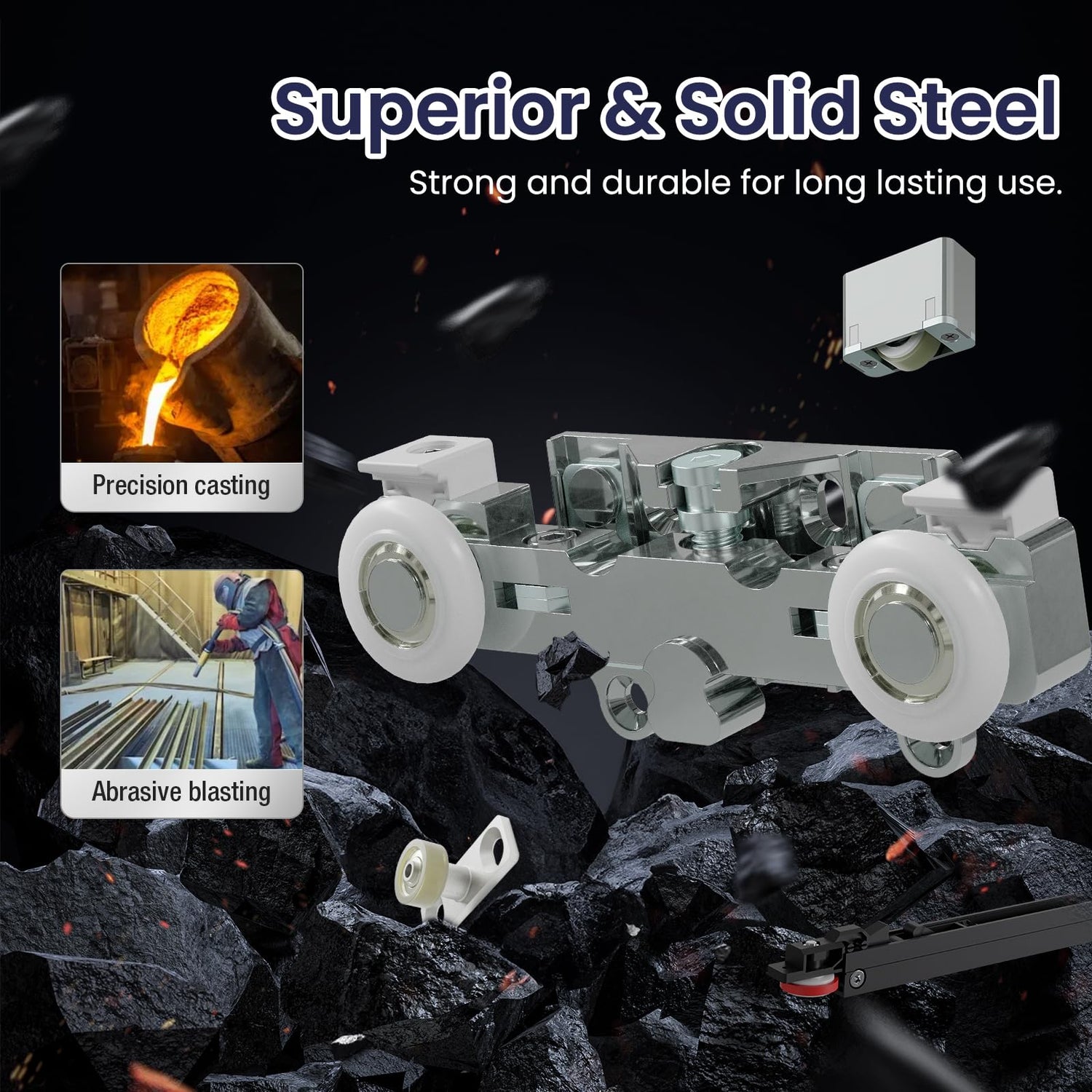 - Complete Hardware Kit: Comes with all necessary components for installation, including 1 Top Roller, 2 Soft Close Mechanisms, 1 x 47.2” Top Track, 2 End Caps, 2 Bottom Wheels, 1 Bottom Track, and 1 Floor Guide.