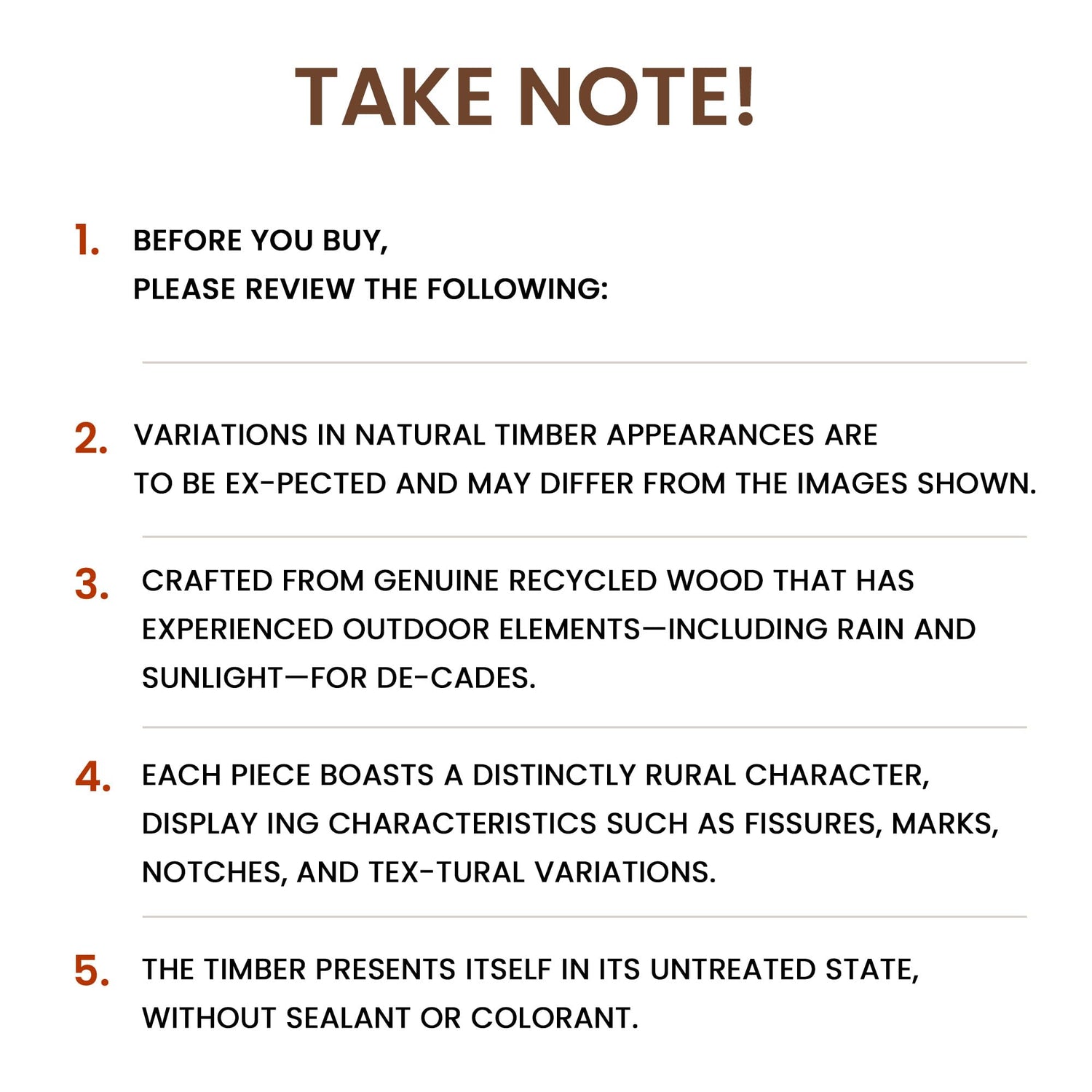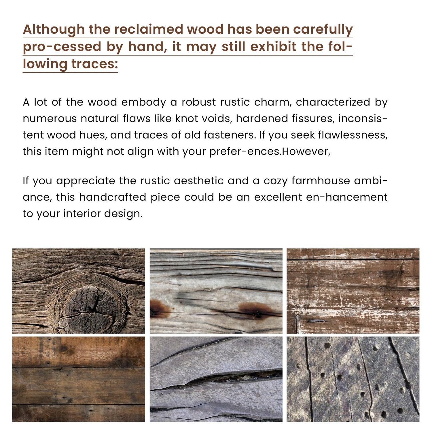 - Old nail holes, knot holes, and cracks can be expected and are a part of what adds character to these one-of-a-kind pieces. Natural wood tones may vary.