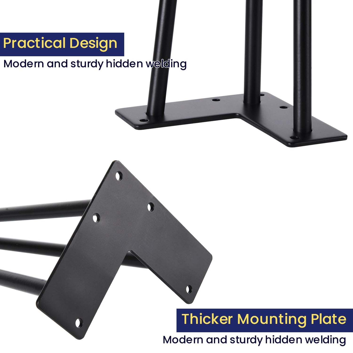 - Made of Steel: These hairpin legs are made of 1/2'' cold rolled sturdy steel. The heavy-duty legs come with a satin black powder-coated finish and will support up to 600 lbs. Stronger and more stable than 3/8''rods or 2 rods.