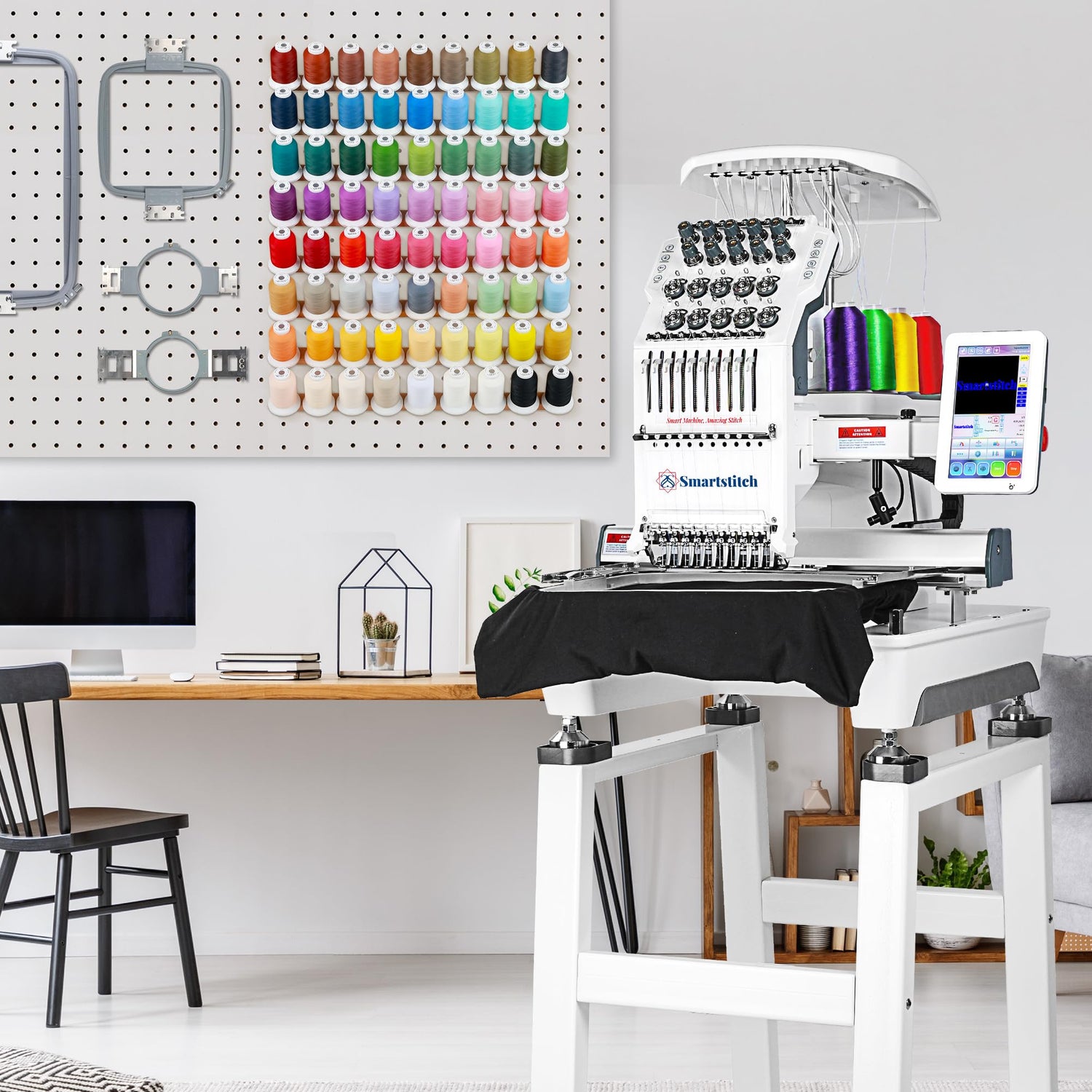 Smartstitch S-1001 Upgraded Embroidery Machine with 10 Needles, 1200SPM Max Speed, 7" Touch Screen, 9.5"x14.2" Embroidery Area, New Gen of Commercial Embroidery Machine for Flat, Hat, T-shirt and more