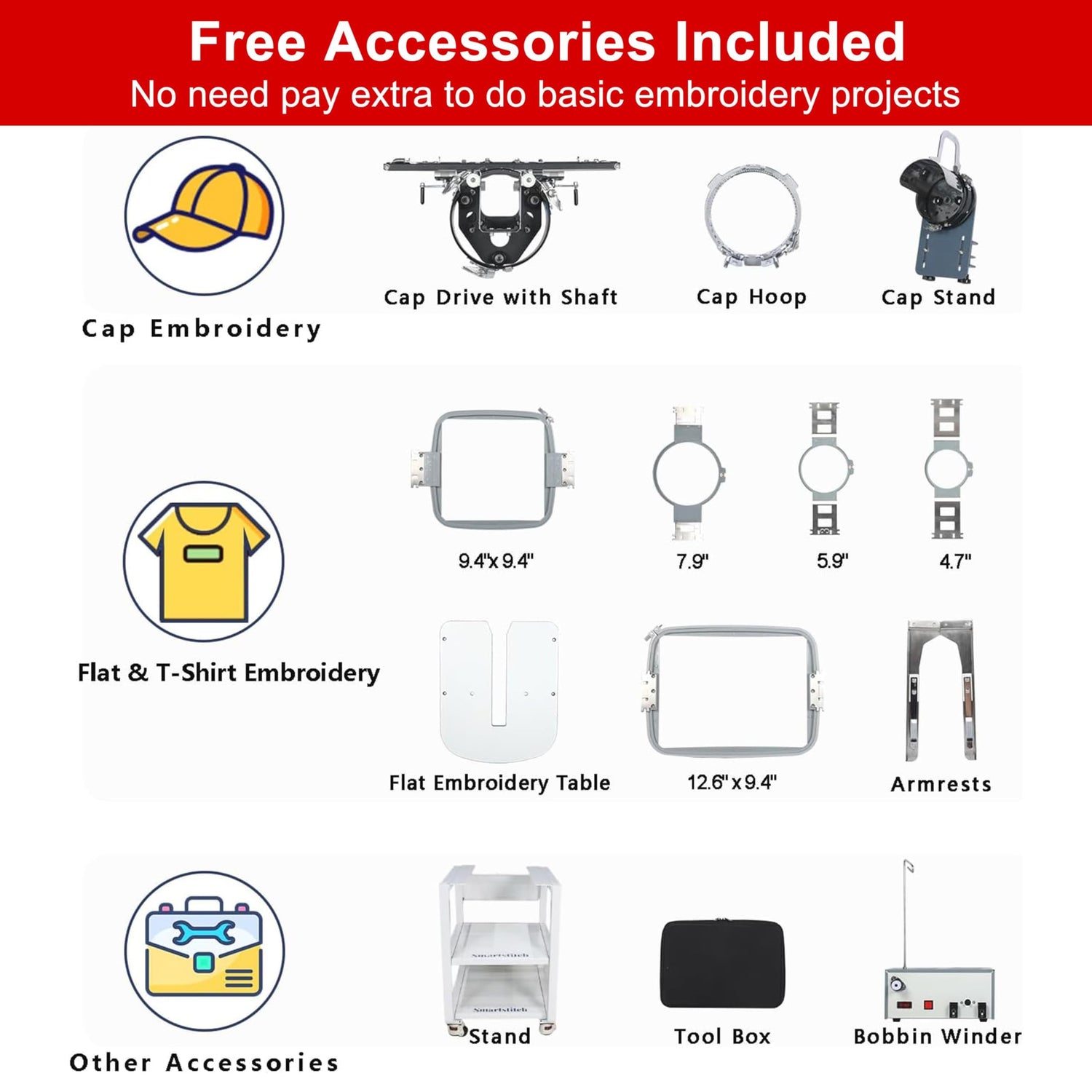 - ★ Completed Training and Technical Support: Fear not! Smartstitch provides operation manuals and video trainings to ensure you can get started with our commercial embroidery machine soon. After the purchase, please contact us immediately when you receive the machine, our experienced engineers will help you to use the machine on line, and local technical support is available also.