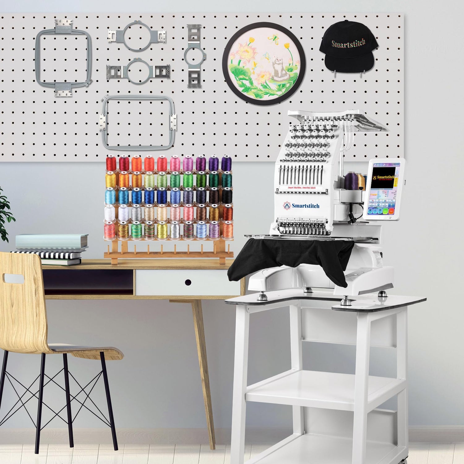 - ★ Full Embroidery Application with Starter Pack: S-1201 commercial embroidery machine can stitch on denim, canvas, leather, vinyl, caps, shoes, bags and anything an industrial machine can stitch on by DST/DSB files from your computer to the machine with the USB/WiFi. The starter pack comes with our machine including machine embroidery threads, stabilizers and bobbin threads.