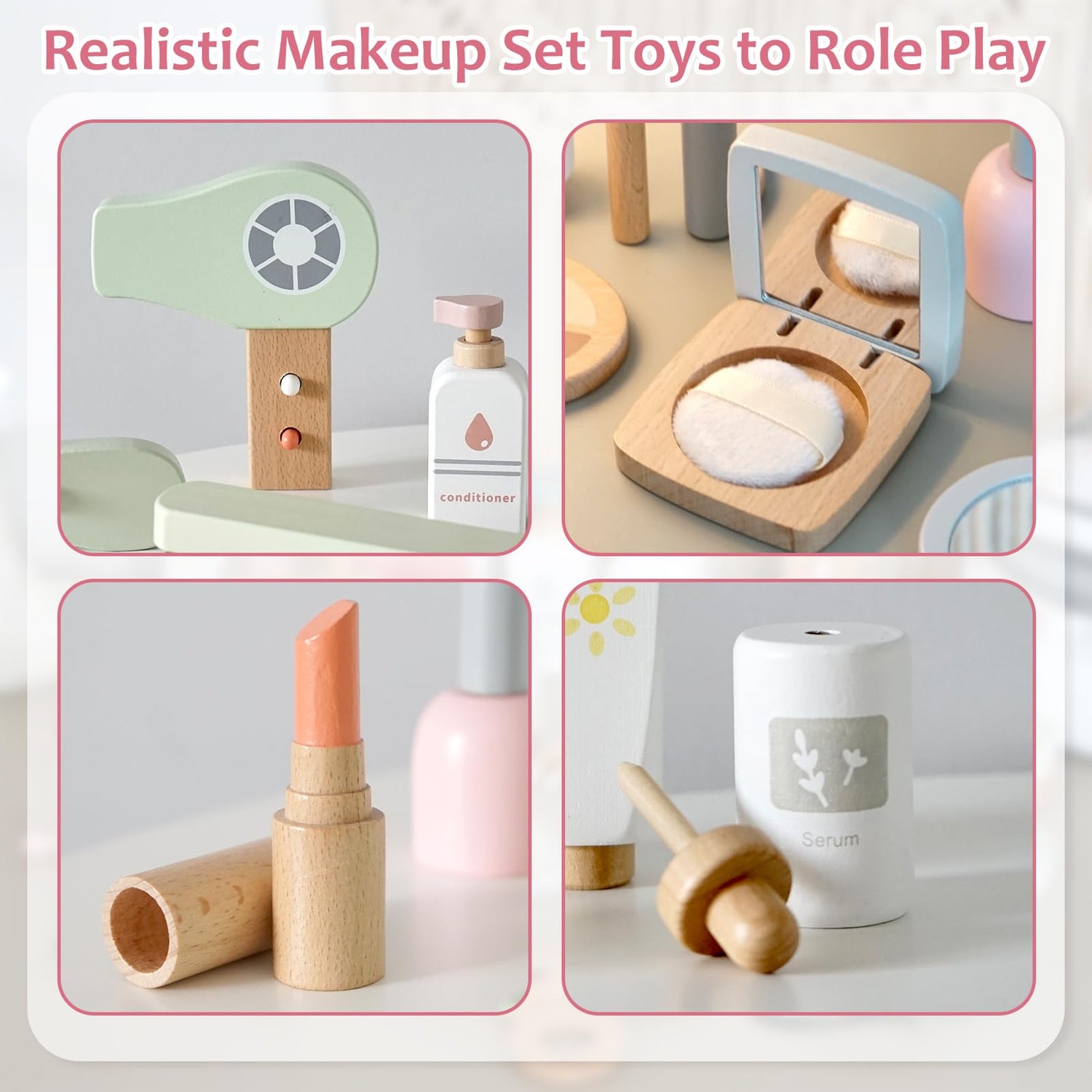 - 【Encourage Creativity】Inspire your child's imagination and creativity with our Wooden Makeup Toy Set. It helps build flexibility, problem-solving, and language skills while supporting social and emotional development.