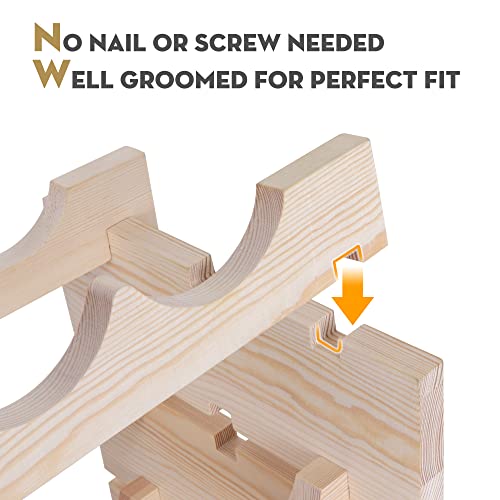 - 【Classic Design】Classic design to accent any home, kitchen, dining room, or wine cellar. Versatile modular stacking style,wave shaped shelves,arc design prevent wine bottles scattered around dowel. Unfinished wood gives option to stain, paint, varnish or leave as it is.Each piece of wood has notches and slots so they can fit together well, make the wine rack more sturdy.