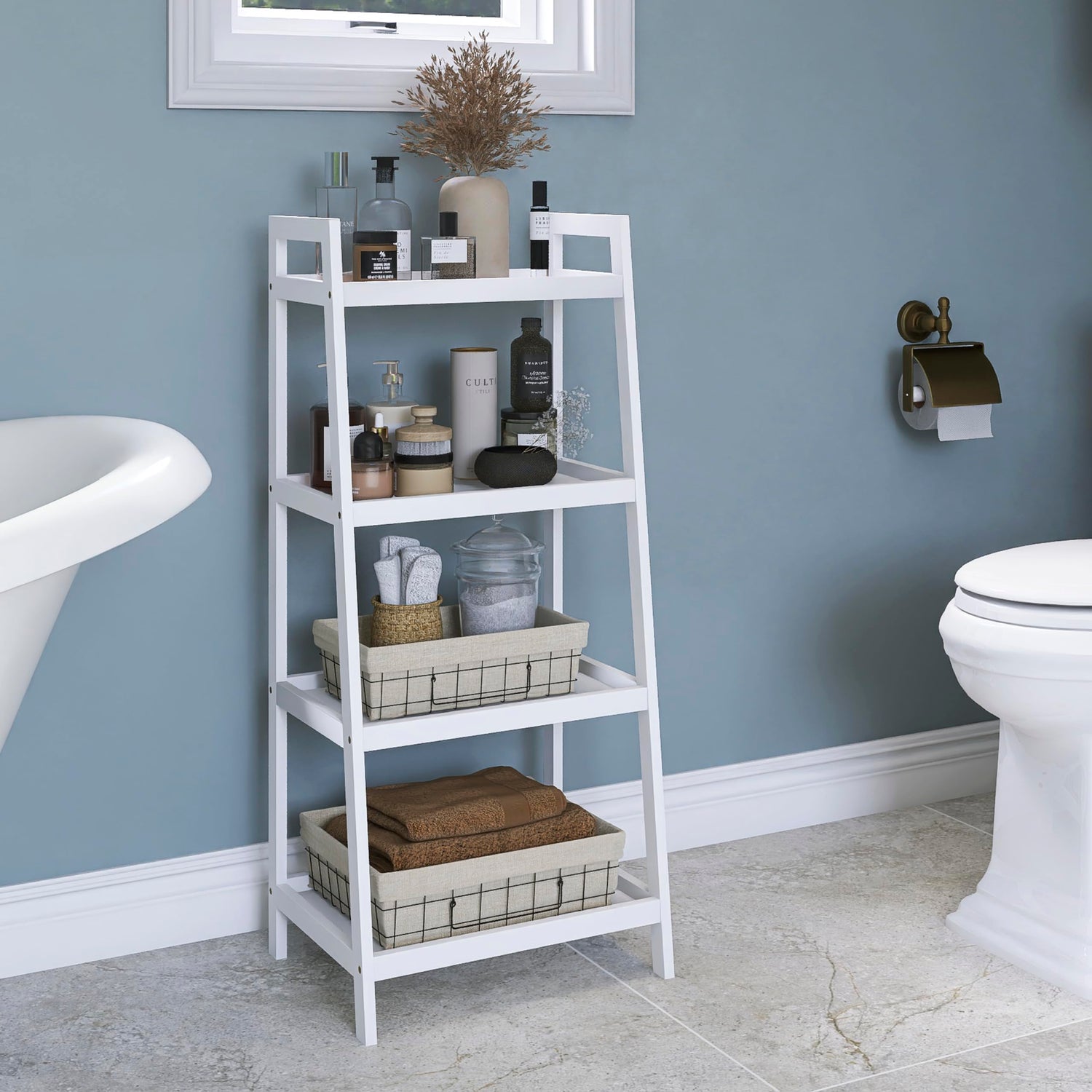 SMIBUY Ladder Shelf, 4 Tier Bamboo Bookshelf, Bathroom Storage Organizer Plant Display Stand, Freestanding Open Shelving Unit with Handles for Home Office (White)