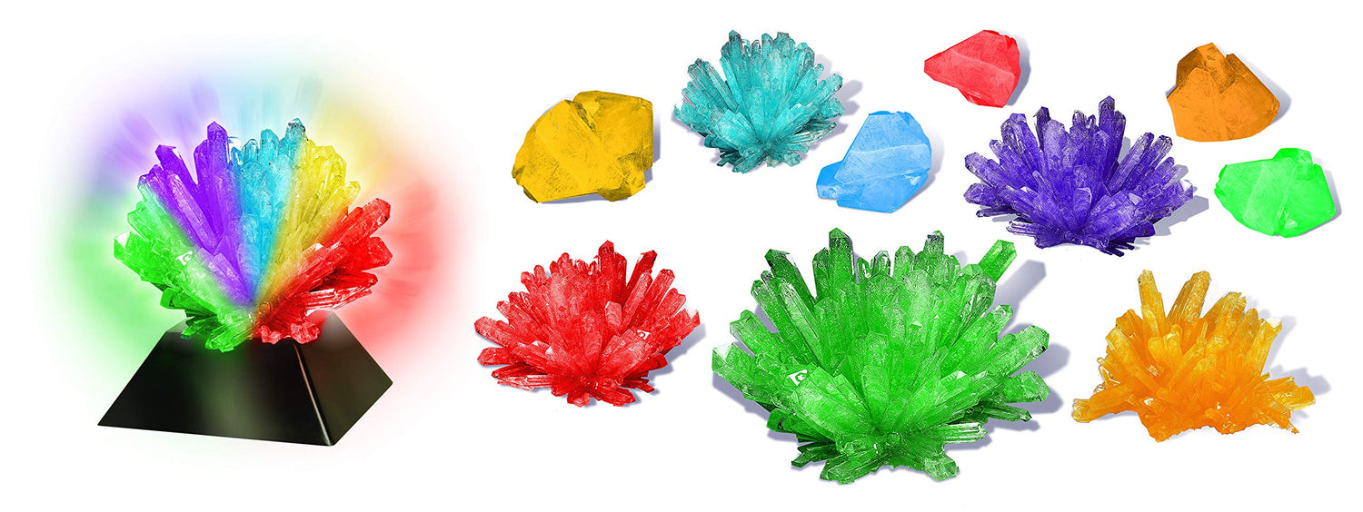 Grow your own amazing large crystals, crystal clusters and crystal geodes. Grow "golden citrine", "emerald" green and "aquamarine" blue. Cool LED base with detailed instructions included.