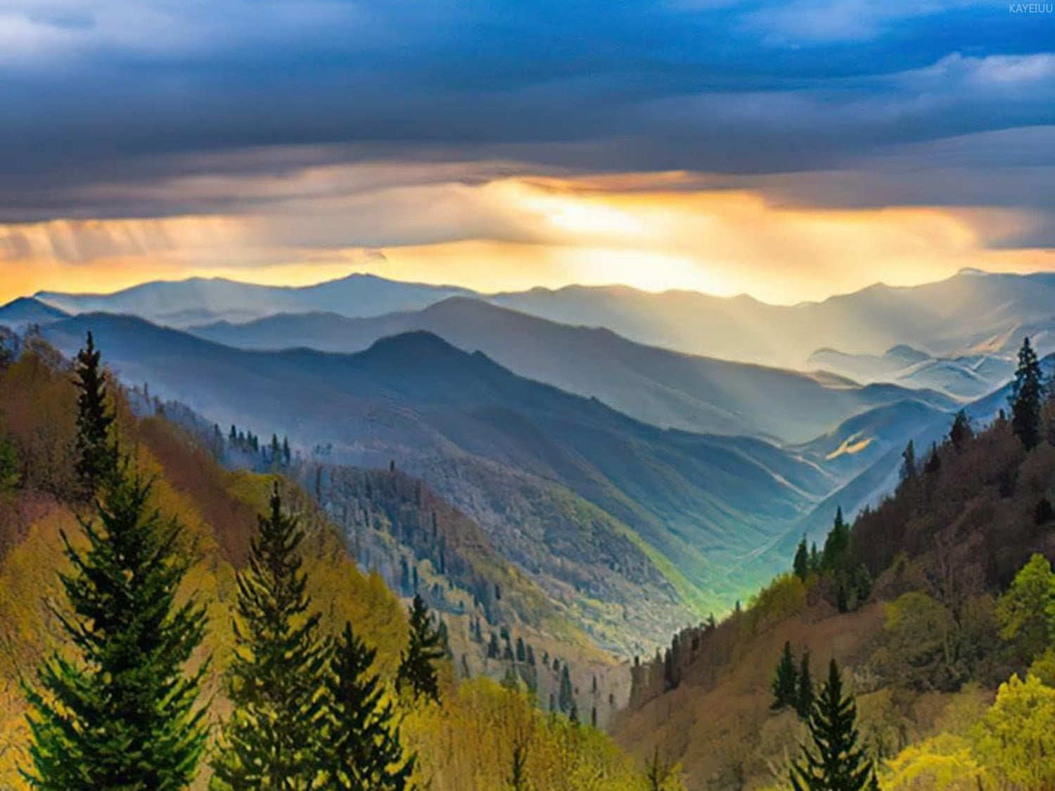 Smoky Mountains DIY 5D Diamond Painting by Number Kit, Spring Sunrise Smoky Mountains National Park Gatlinburg Crystal Rhinestone Paintings Cross Stitch Home Wall Decor 12x16 inch