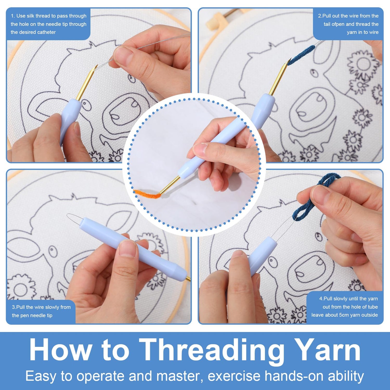 - Packaging List: this punch needle kit includes 1 embroidery fabric, enough yarn, 1 punch needle, 1 adjustable embroidery hoop (20x20cm), 1 punch needle threader, and 1 set of English instructions