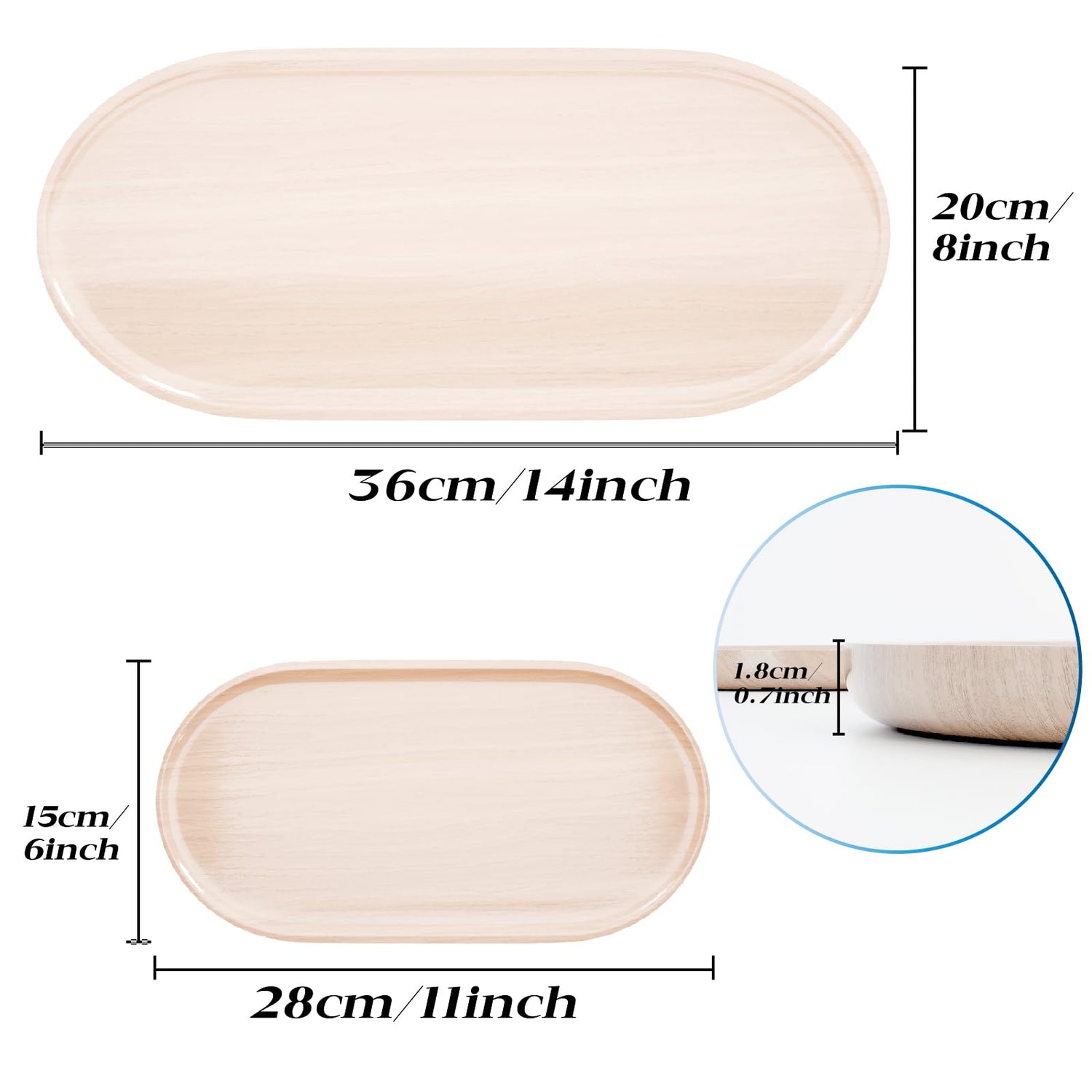 Details: Natural Wood - Our wooden trays for decor are made of premium Beech wood. We only use 100% natural wood.