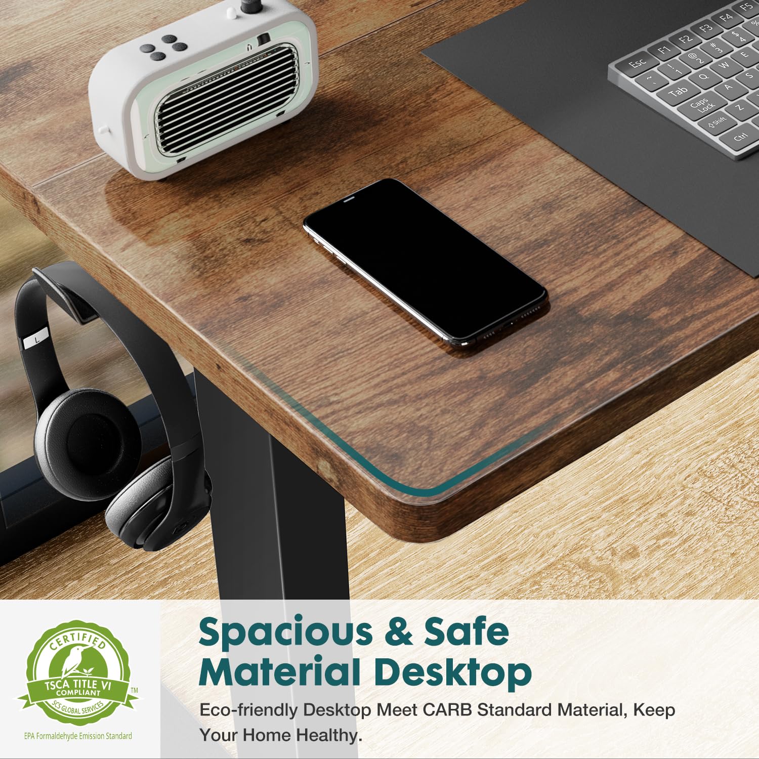 - 【Suitable for Daily Use】 Stay organized with our sit stand desk which comes equipped with 2 hooks on either side and 2 wire collecting holes on the desktop, making it an easy and convenient option for daily use. The eco-friendly wood is sleek, easy to clean, and odor-free.