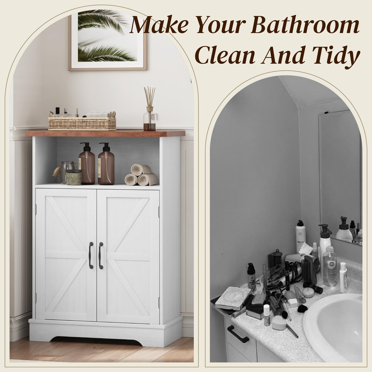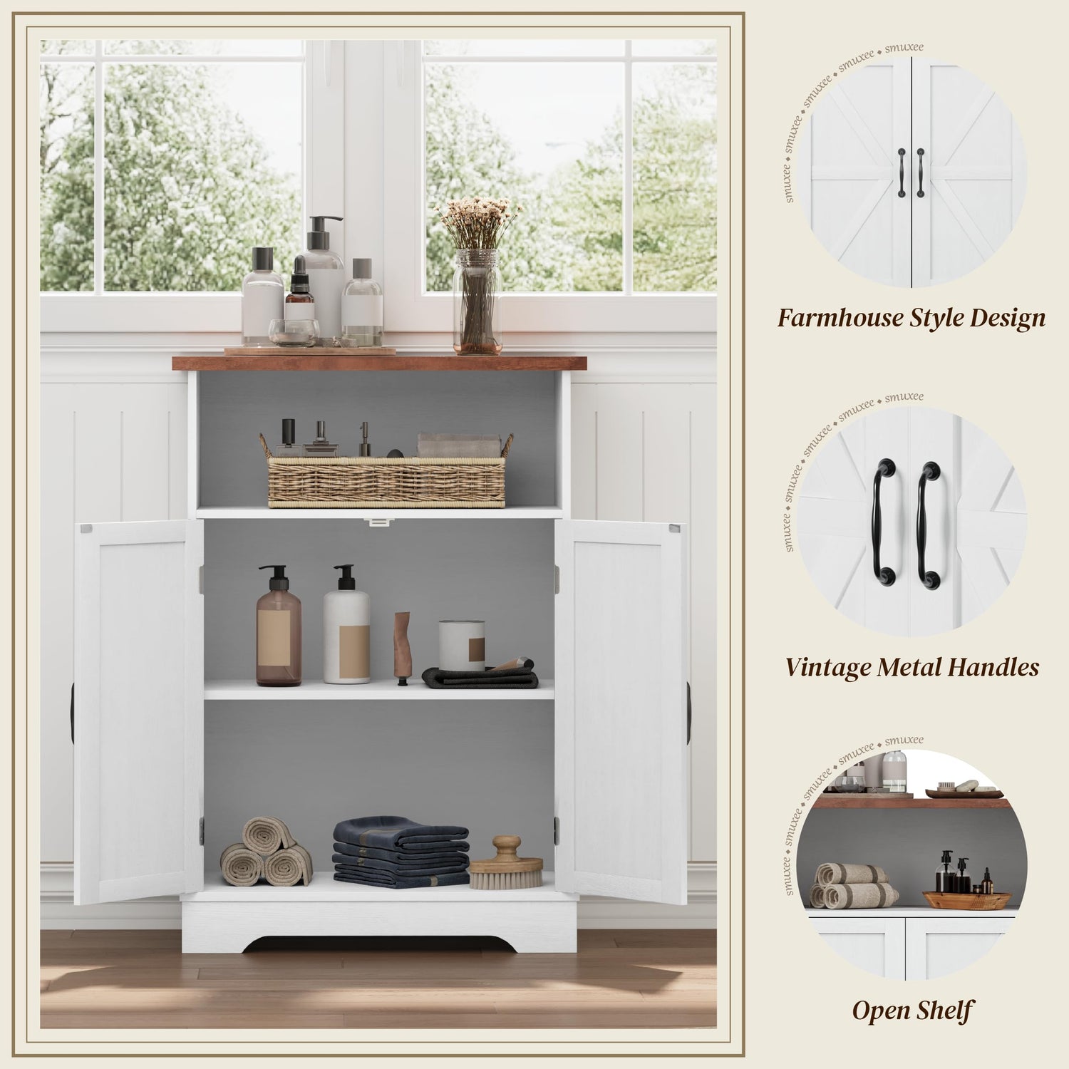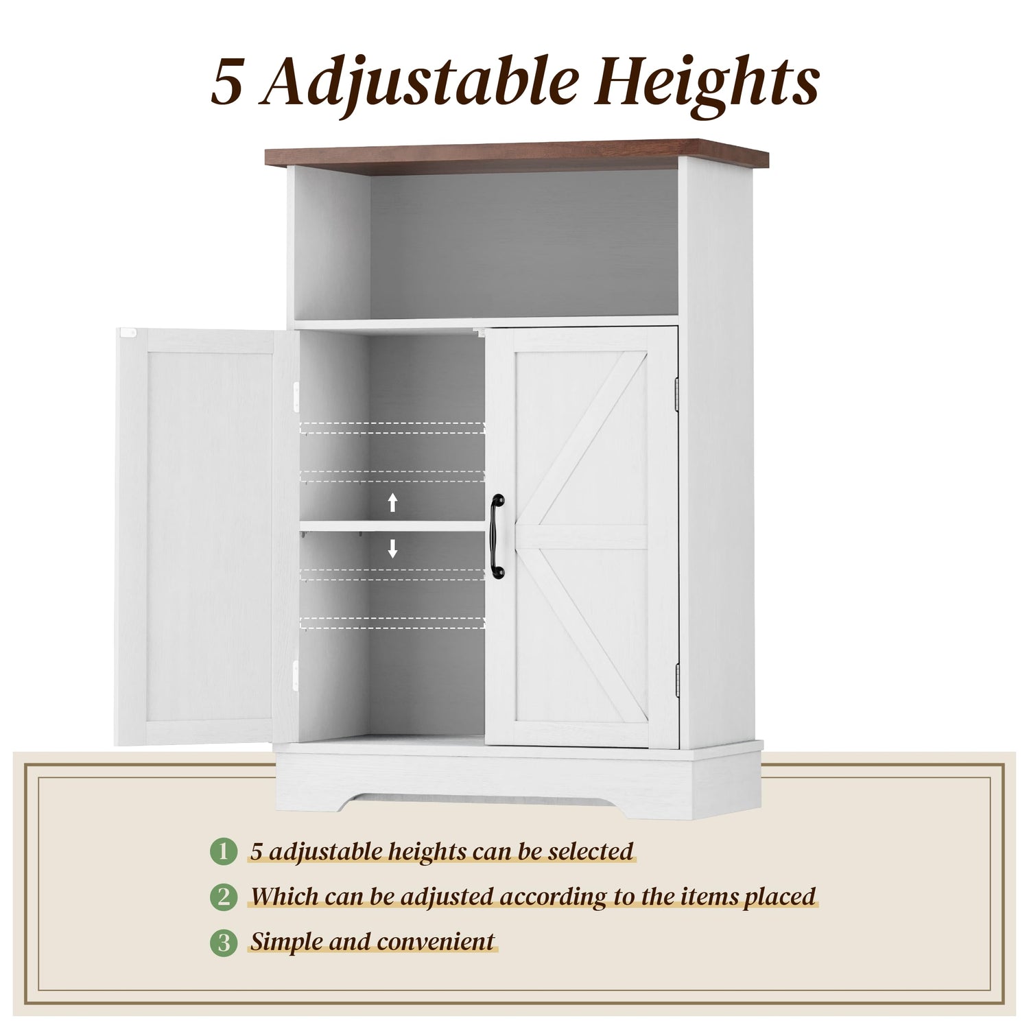 Smuxee Freestanding Cabinet Organizer, Farmhouse Style with Barn Door and Adjustable Shelf, White, for Bathroom, Kitchen, Living Room
