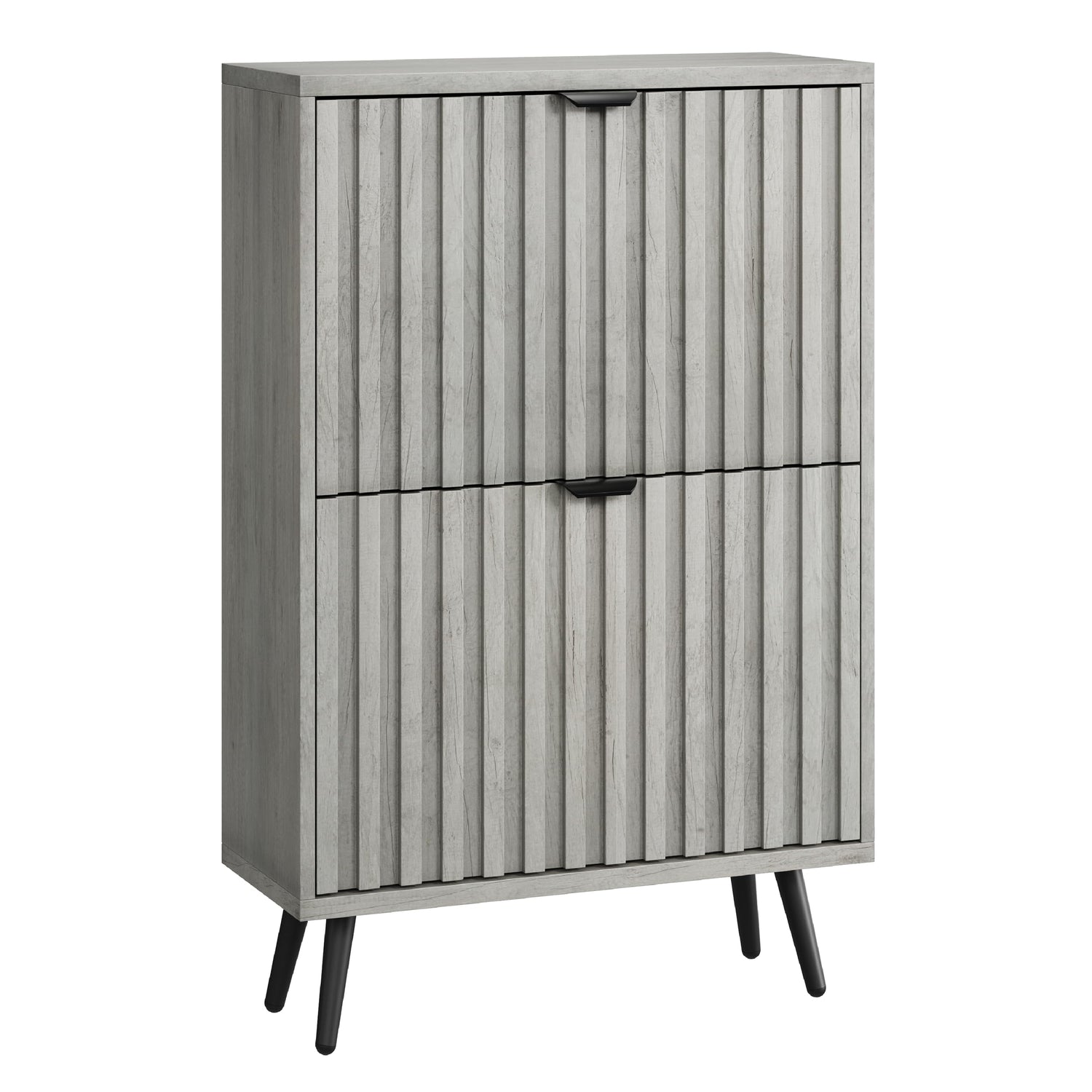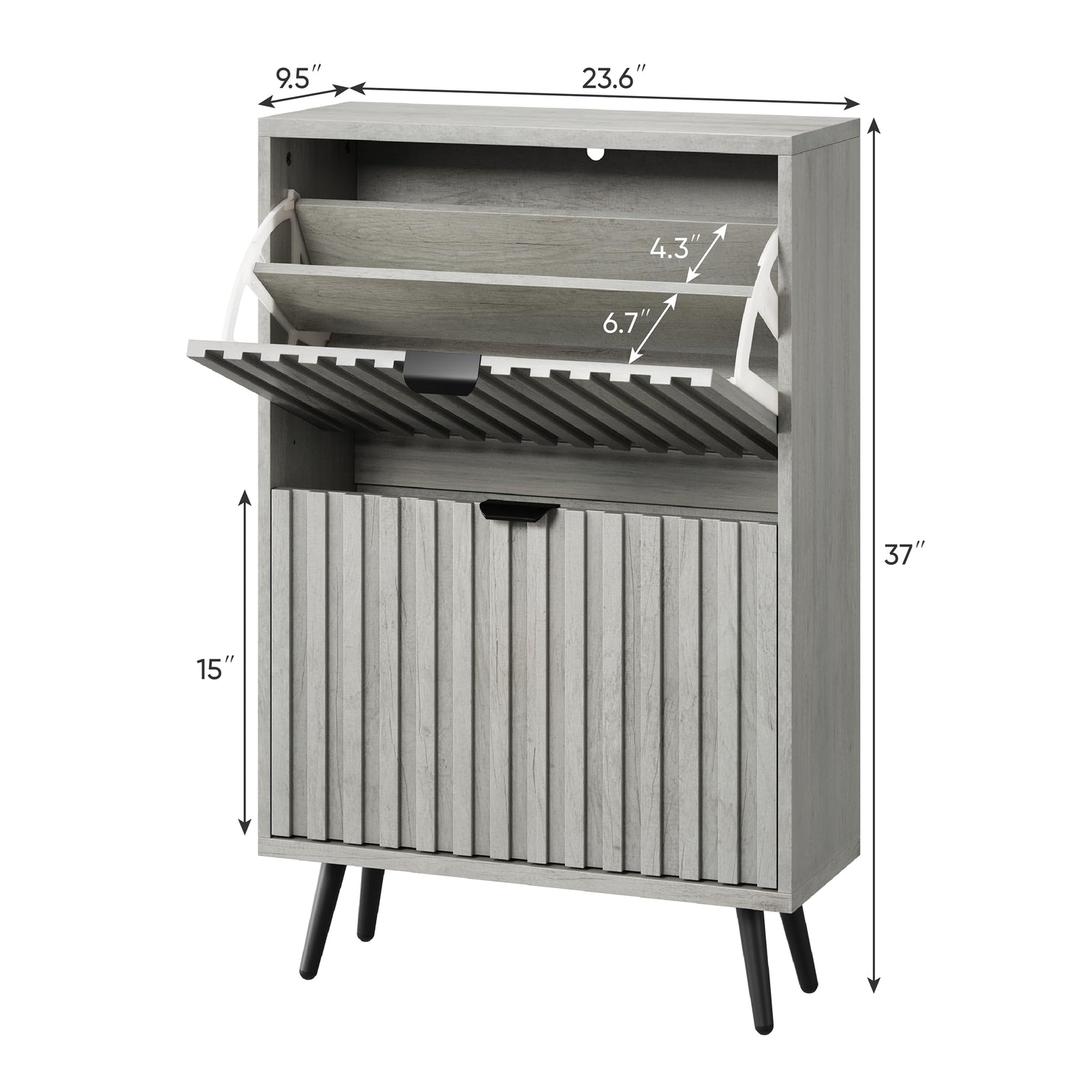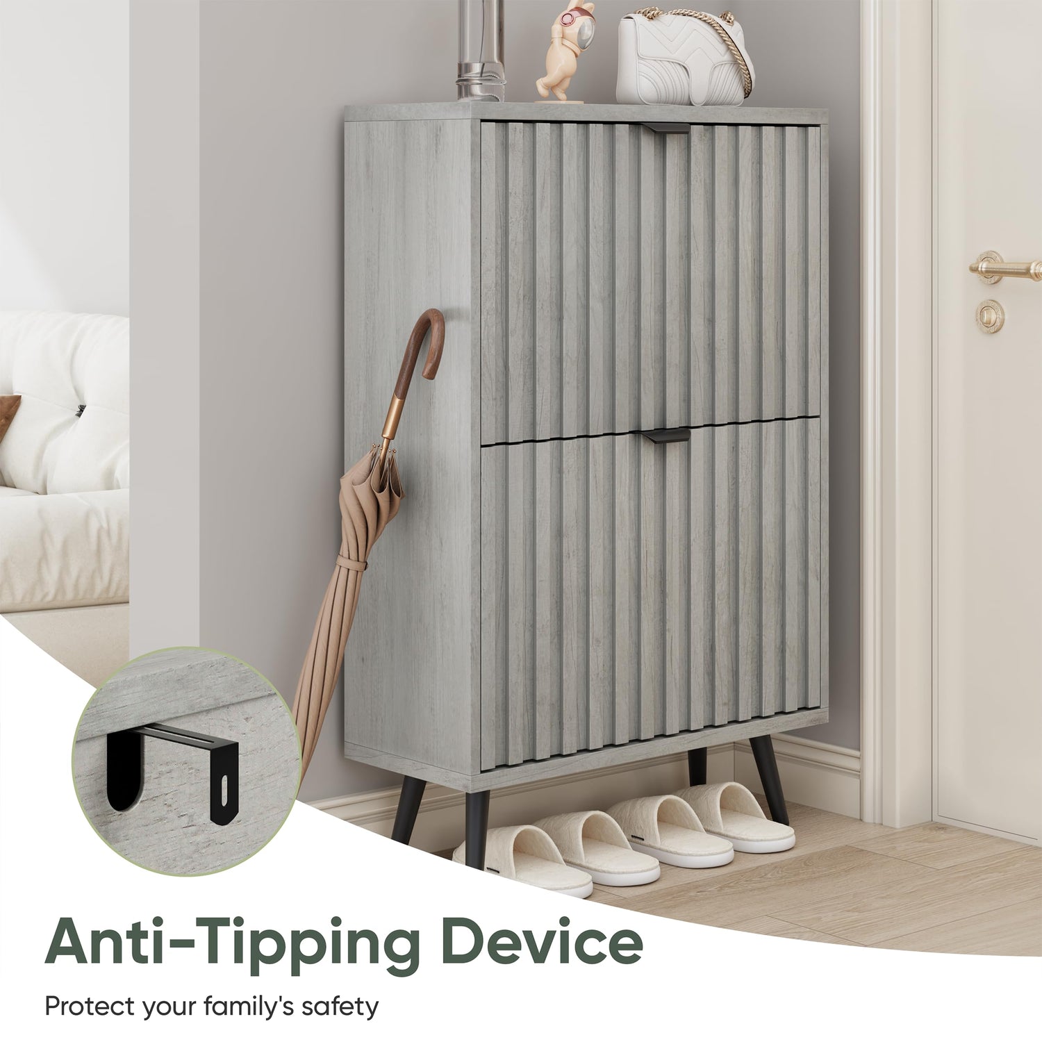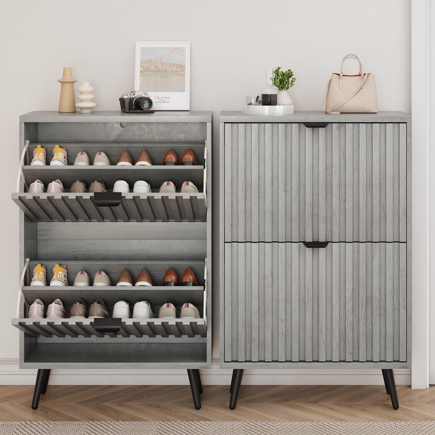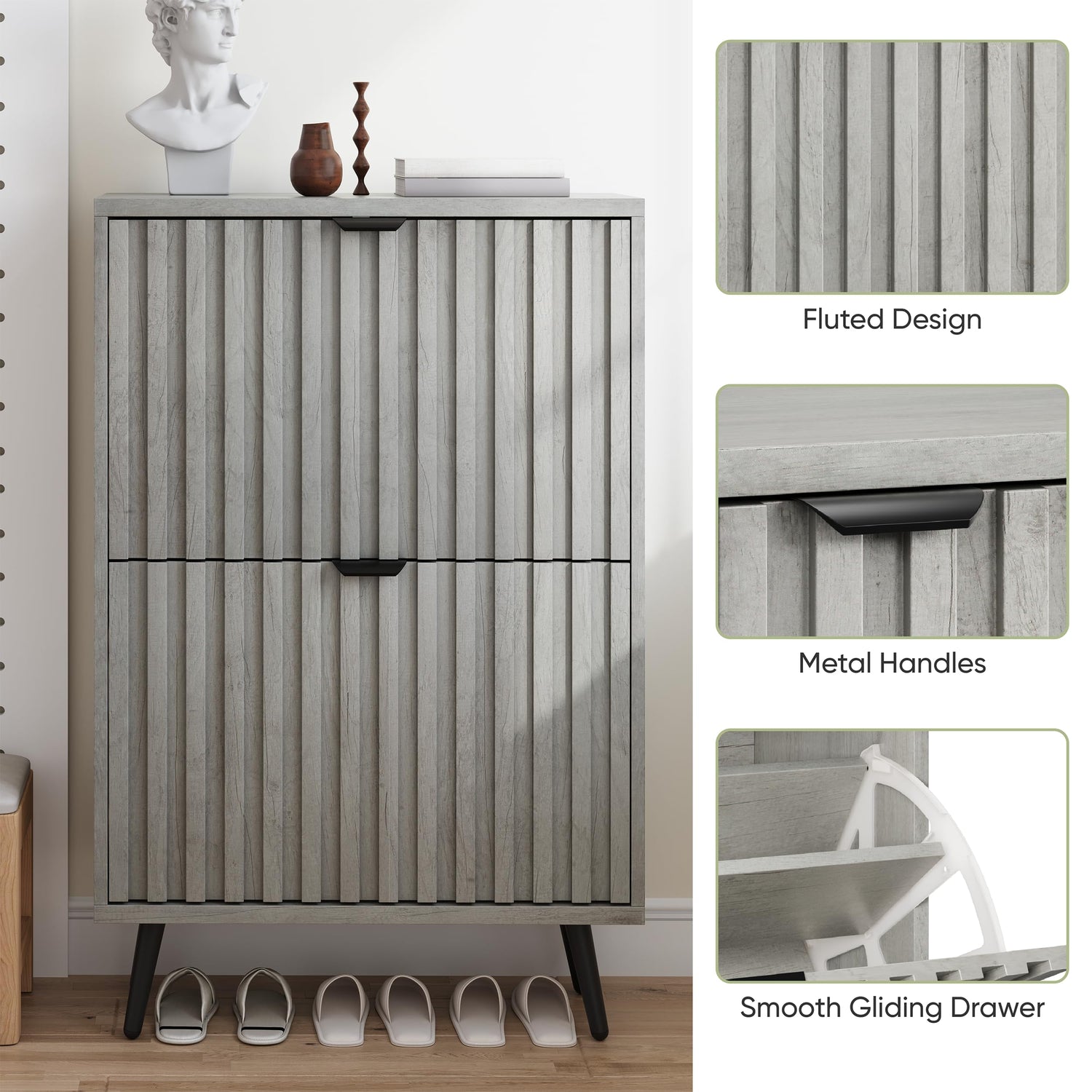 Smuxee Shoe Cabinet with 2 Flip Drawers, 23.6" Grey Hidden Shoe Storage Cabinet with Fluted Design, Freestanding Shoe Organizer Cabinet for Entryway, Hallway, Living Room, Closet