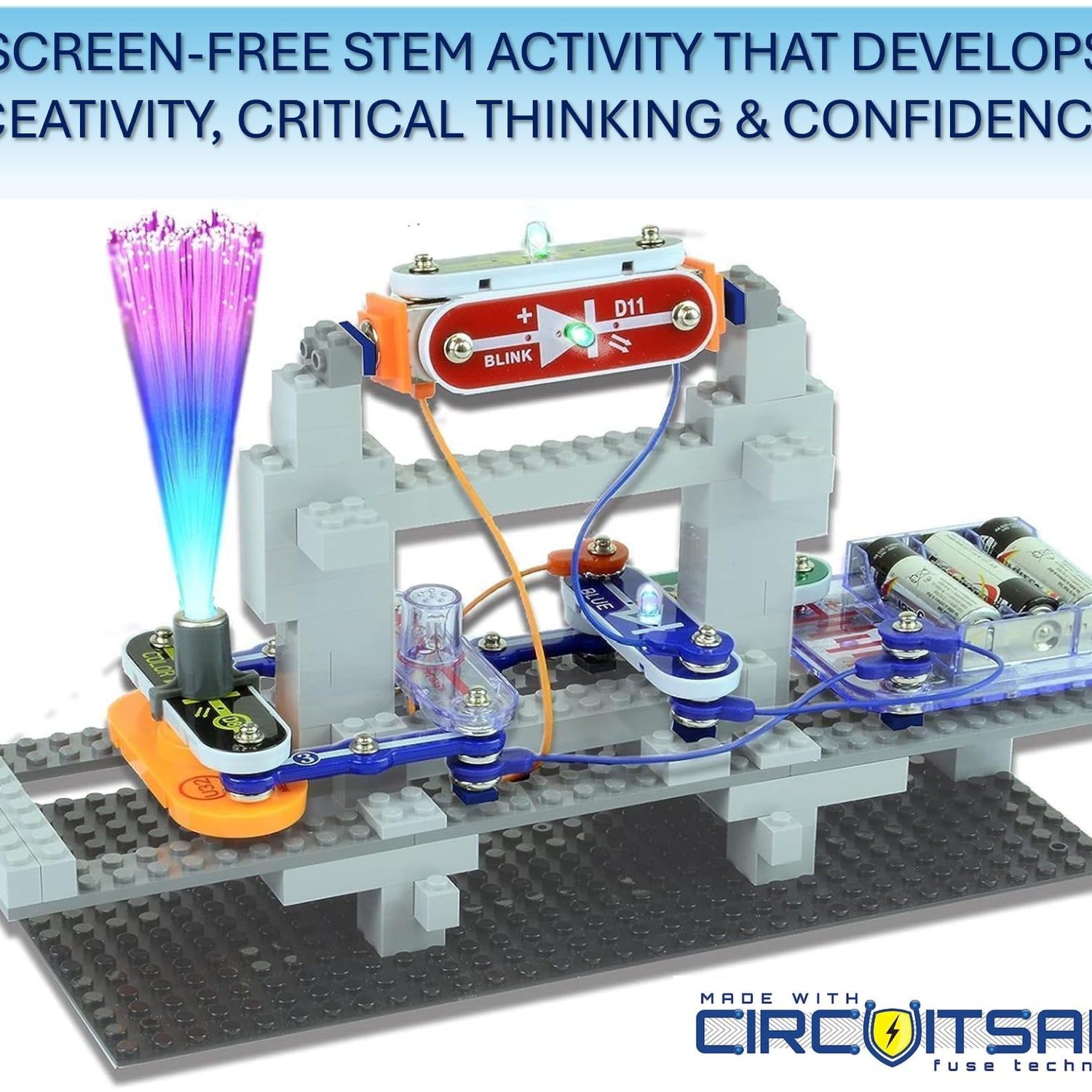 • SO MANY TOYS IN A SNAP: Make dozens of cool electronic gadgets - all from one box! A safe and fun way to introduce children ages 8+ to the basics of electrical engineering! Build exciting projects and toys using the included colorful instruction book!
