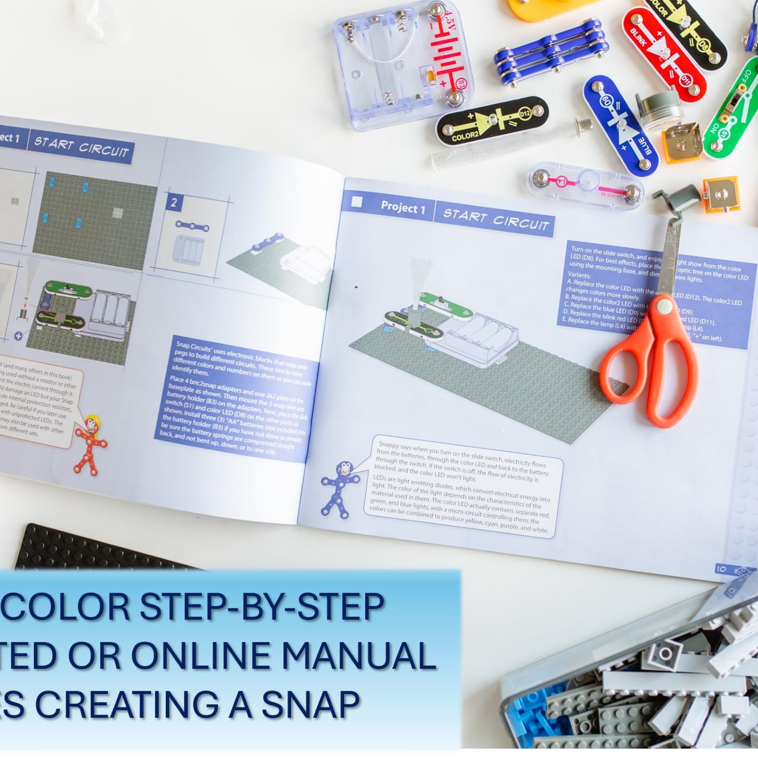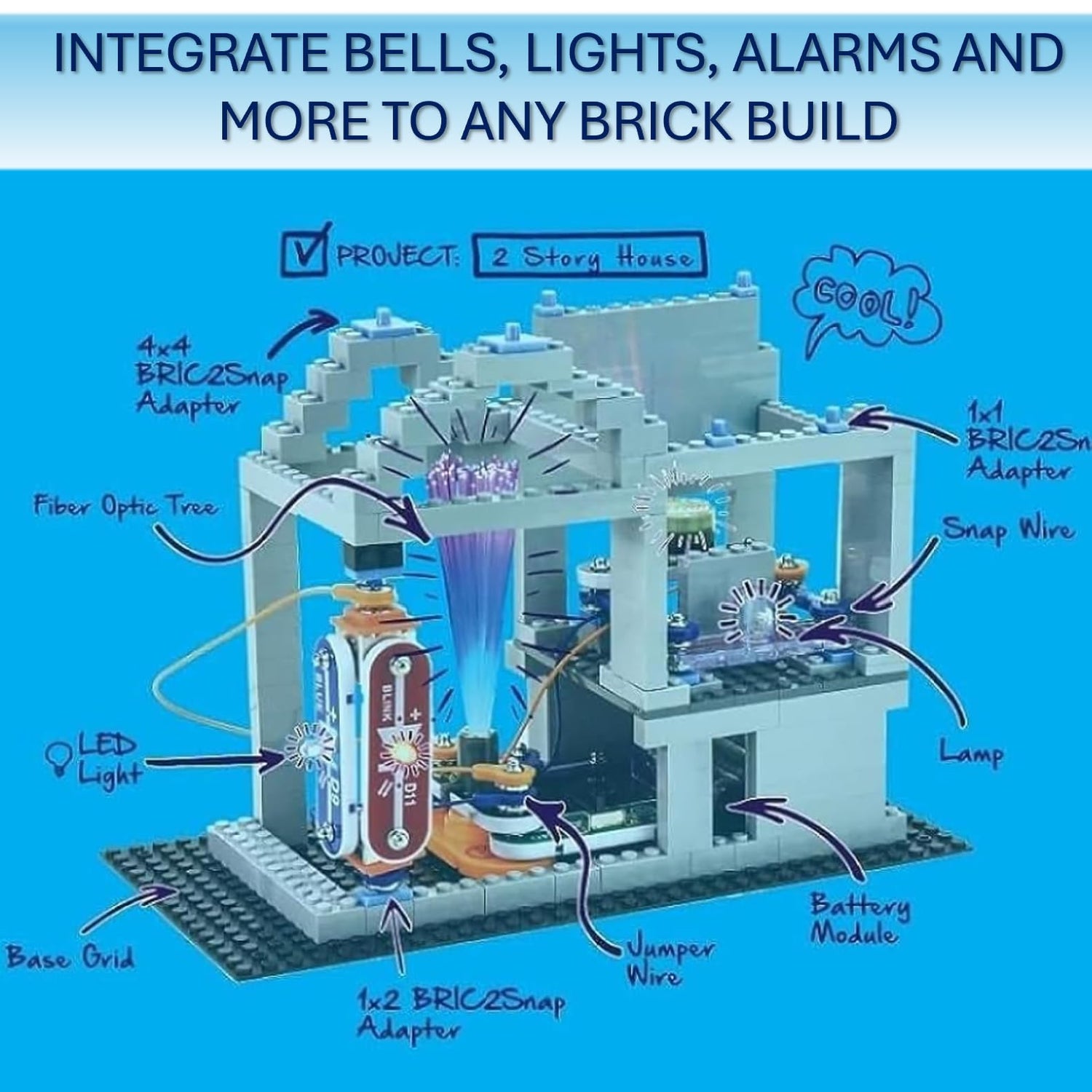 • BUILD WITH BRICS Combine Snap Circuits with building bricks to create awesome combinations of construction and circuitry! With Bric-2-snap technology, kids can connect their builds with Snap Circuits lights, sounds, moving parts, and 3-D circuits to invent and make their projects go!