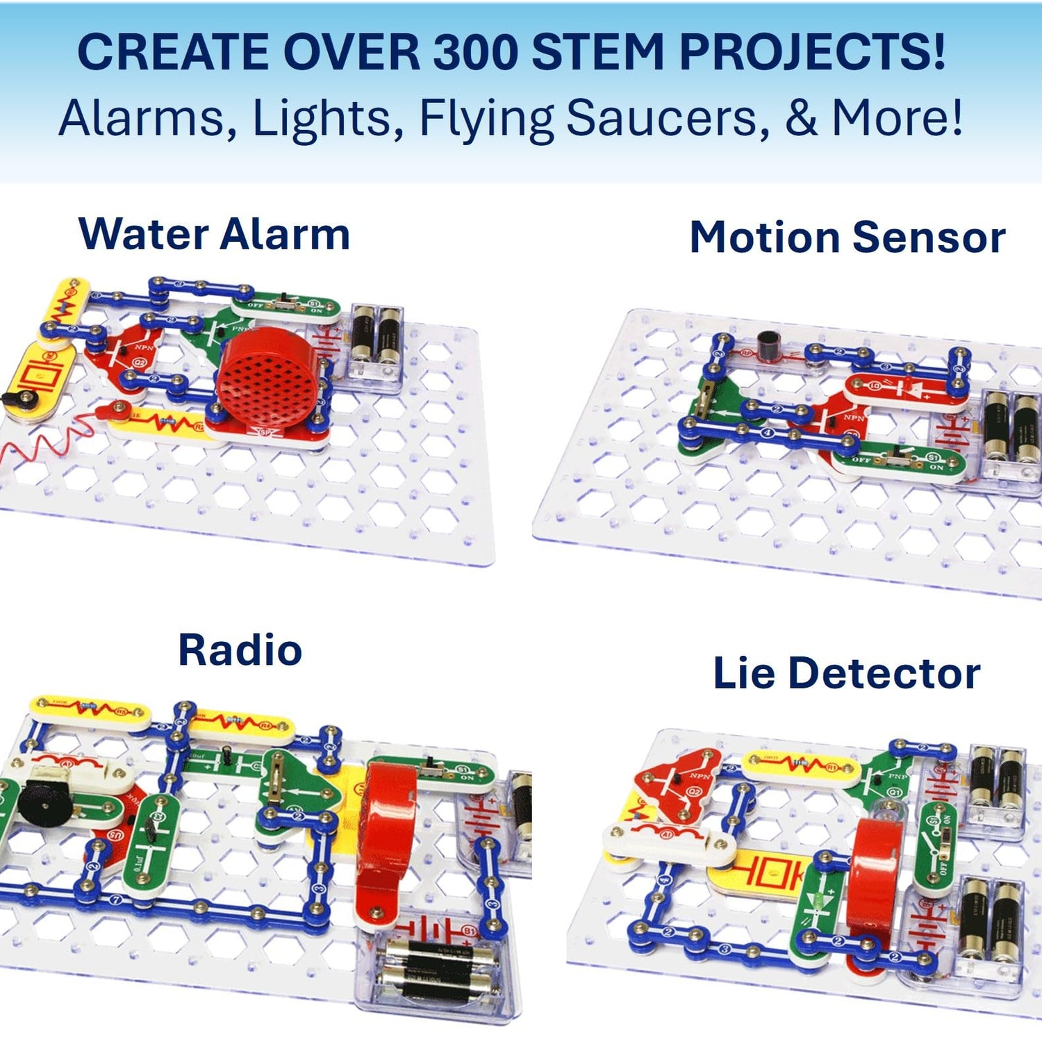 - AMAZING VALUE: So many projects to make and build! Build over 300 exciting projects with this classic kit! Included 60+ pieces build exciting projects such as AM radios, burglar alarms, doorbells, and much more! You can even play electronic games with your friends.