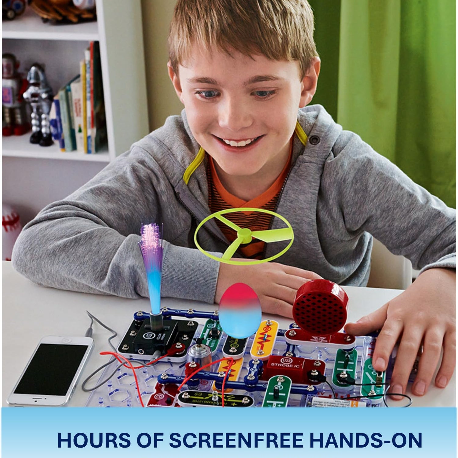- PROJECTS THEY'LL LOVE: So many fun electric-powered projects you can build and play! Build over 175 exciting projects with included 55 parts that come together in a snap! Build your own light show using fiber optics and attach your smartphone to watch your light change to the beat of your music! Create an amazing spinning pattern from your newly built strobe light!