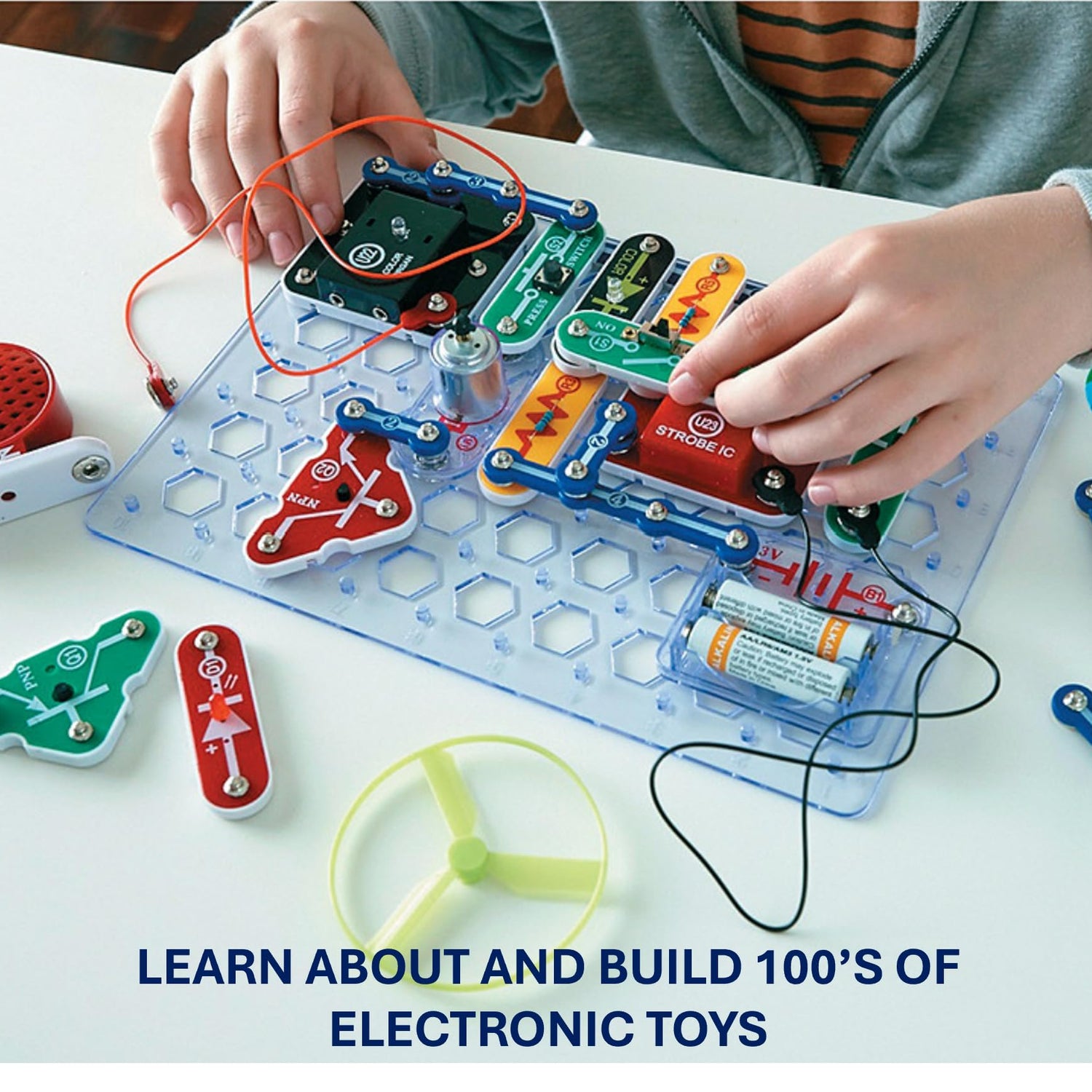 - SO MANY TOYS IN A SNAP: Make dozens of cool electronic gadgets - all from one box! A safe and fun way to introduce children ages 8+ to the basics of electrical engineering! Build exciting projects and toys using the included colorful instruction book!
