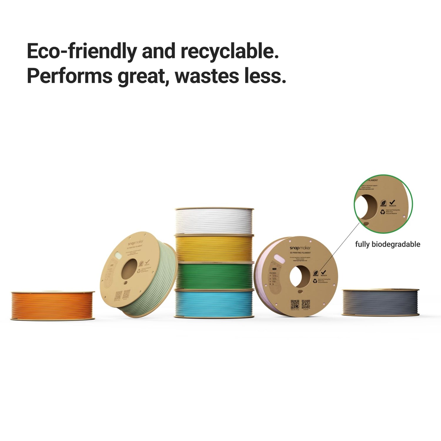 - 【Works with Most Printers】SnapMatte PLA Works seamlessly with nearly all the FDM 3D printers, making it easy to use for beginners, including Bambu Lab series (X1/X1C/P1S/A1/A1 mini), Creality (K1/K1 Max/K2/Ender Series/CR series), AnkerMake M5, Snapmaker Artisan/J1s/2.0, Prusa MK4/XL, Qidi X-Max3, Elegoo Neptune 4, Anycubic series , Flashforge Adventurer 5M, and other popular models, optimized for high-speed printing and multi-color systems