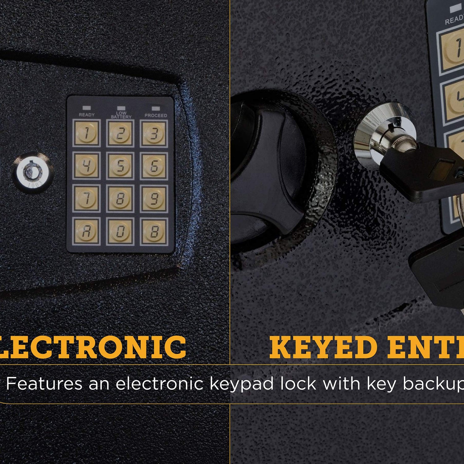 - ELECTRONIC AND KEYED ENTRY - prevent firearm accidents, theft and misuse with this durable gun safes for rifles and shotguns with a high security electronic keypad lock with key backup to keep you from getting locked out of your safe by accident
