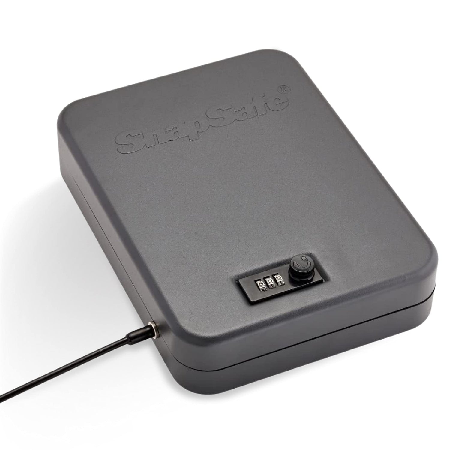 SnapSafe Portable Combination Lock Box for Guns and Valuables - Includes Lock Box (with 3-Digit Combination Lock) and Patented Security Cable - An Ideal Car Gun Safe - Large, 9.5 x 6.5 x 1.75 Inches