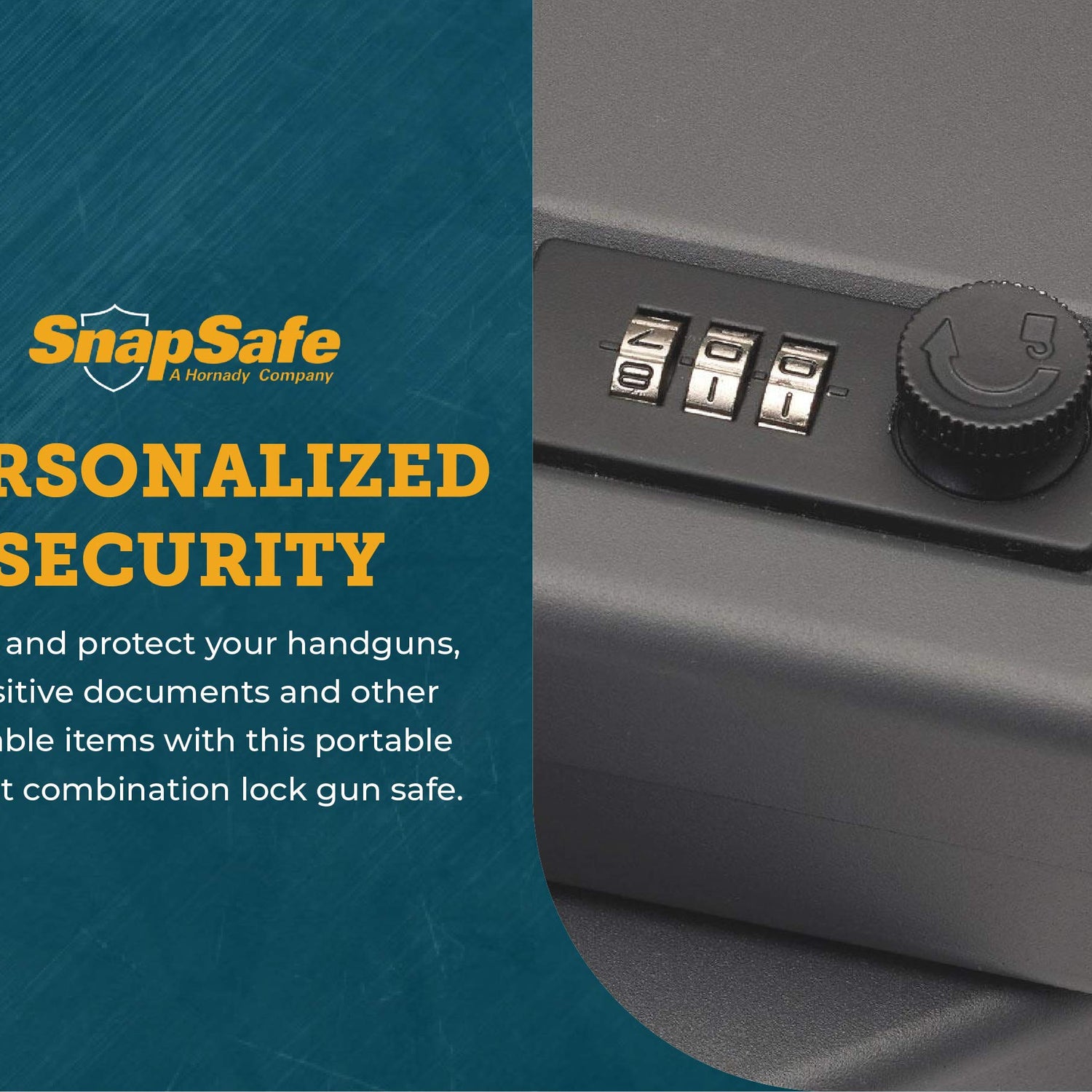 - Security, Everywhere You Want It – Store and protect your handguns, passports, sensitive documents, heirlooms, media cards, ammo and other valuable items in this SnapSafe portable gun safe with combination lock. Allows the owner to set their own personal 3-digit combination