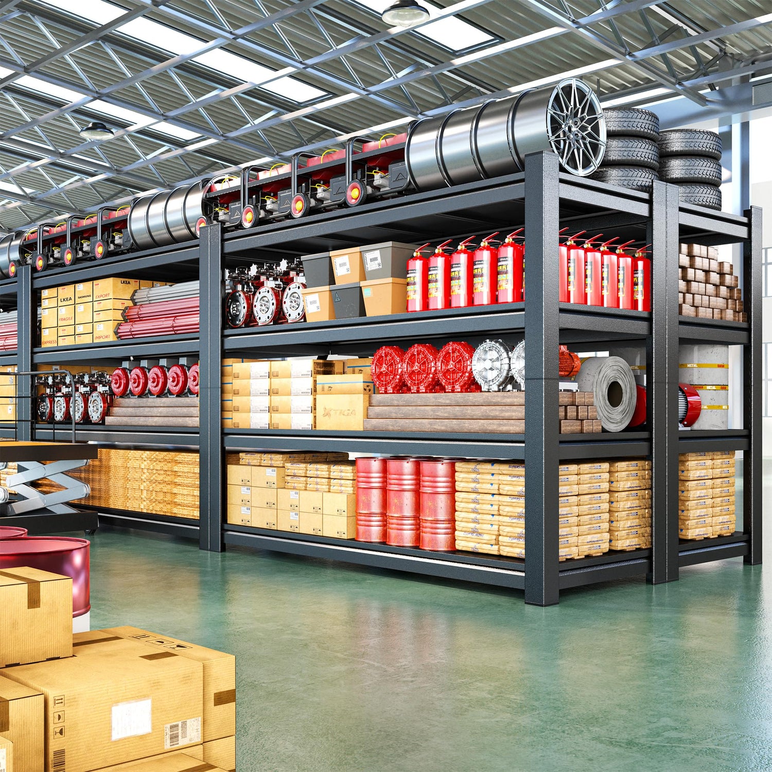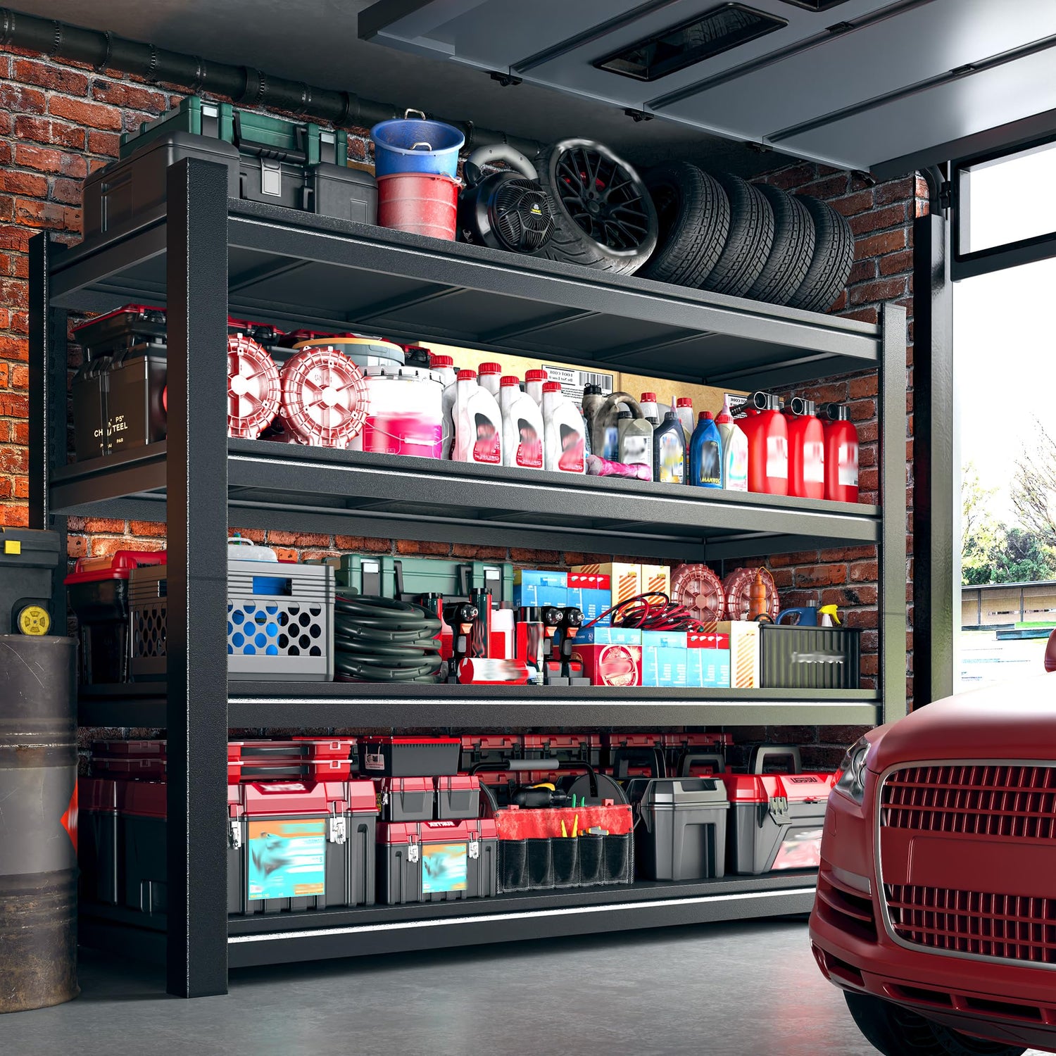 - 【1800LBS Industrial-Grade Load Capacity】The 1800LBS super heavy-duty shelf can bear a load of 450LBS per layer, each shelf features a rib support structure. Sturdy and professional for carrying heavy objects, suitable for storage needs in garages, factories, warehouses, basements, outdoors and supermarkets