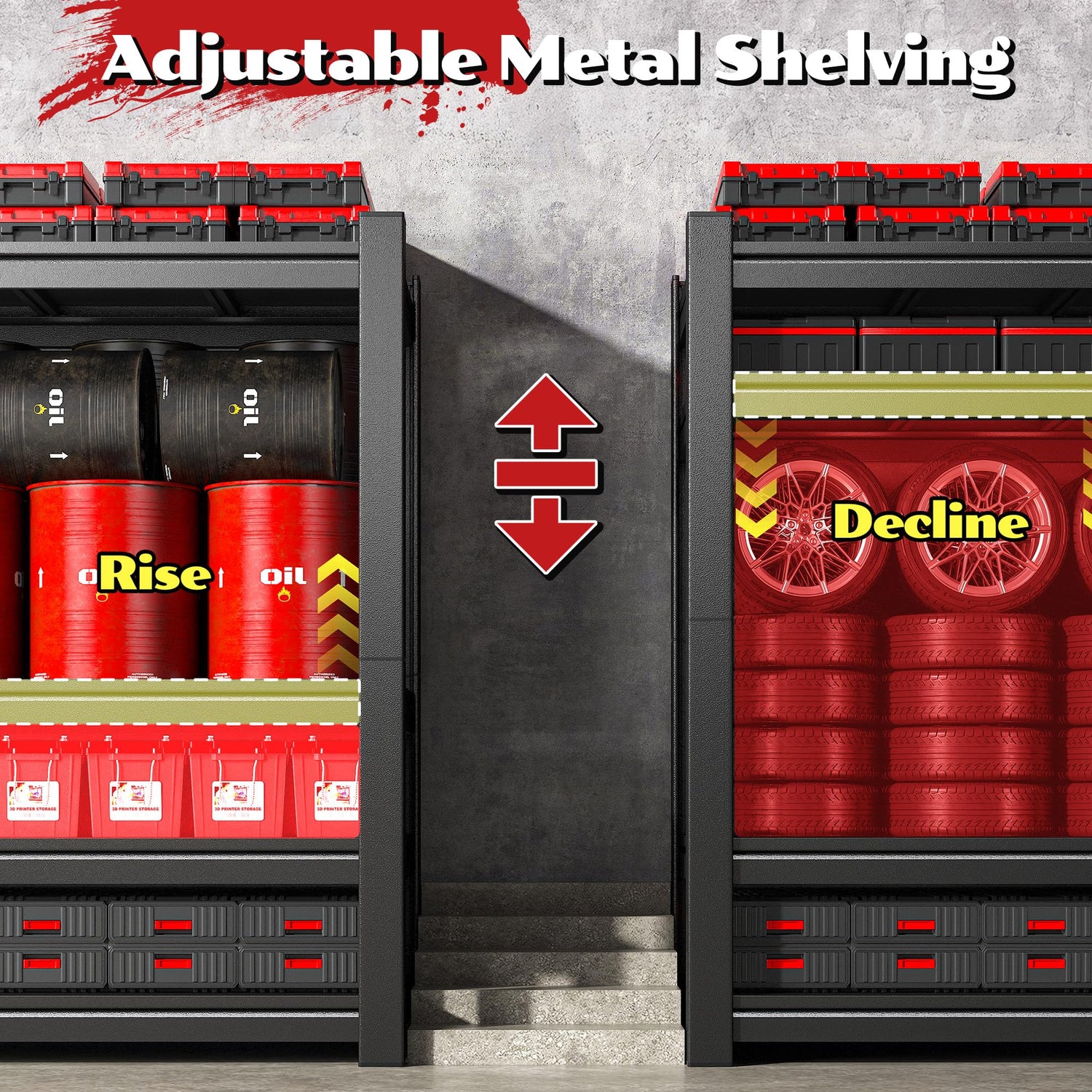 - 【Freely adjustable metal storage shelves】The floor height can be adjusted by changing the installation height of the steel plate to adapt to the height of different items. It also supports splitting and reorganizing into two independent units to meet the diverse space requirements of garages, basements and warehouses