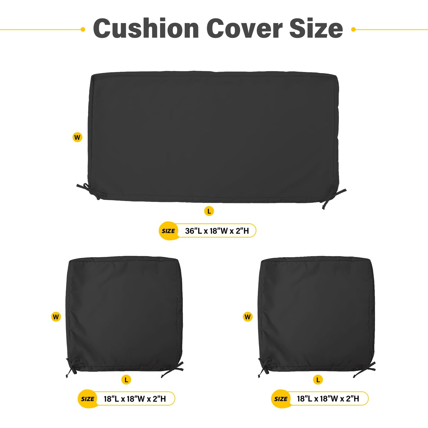 - 🍓QUANTITY & DIMENSION--This outdoor patio seat cushion covers set Included 3Pack cushion slipcovers(Black)- 1Pack -Long Loveseat /couch cushion covers (36Lx18Wx2H Inch), and 2Pack-Single Sofa/Chair cushion cover (18Lx18Wx2H Inch) fits for 4 Pieces 4-person seating wicker rattan patio furniture conversation set(1x loveseat,2x single sofa,1x coffee table)-COVERS ONLY, INSERT NOT INCLUDED.