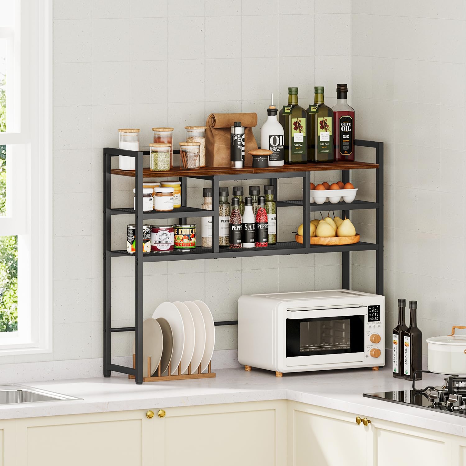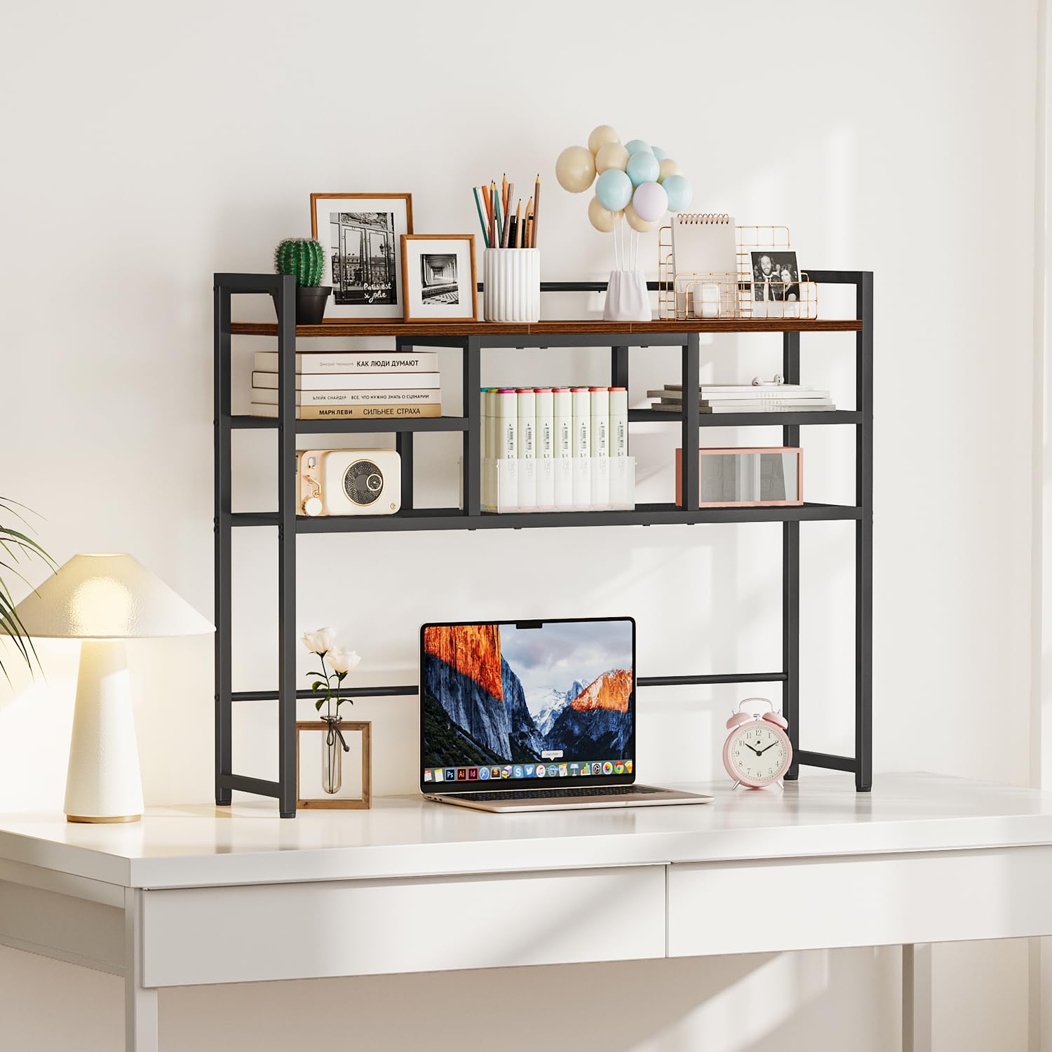 Snughome Desk Shelf, 38.6" Desktop Bookshelf, Desk Hutch Dorm, Countertop Storage Hutch with 5 Shelves for Computer Desk, Multipurpose Wood Desktop Display Organizer Rack for Home Office Dorm