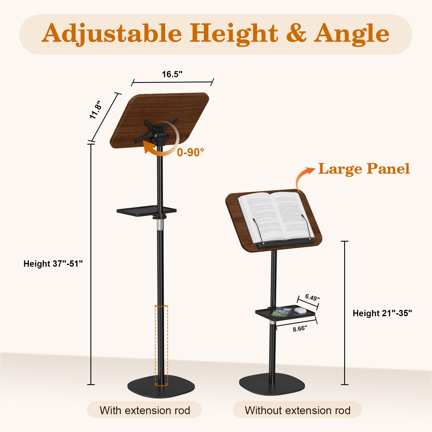 - Height Adjustable: Height adjustable from 21" to 51". Crafted from high-quality materials, this floor book stand offers a stable and reliable platform for your books, tablets, or e-readers. The robust design ensures long-lasting use, making it a perfect addition to your home or office