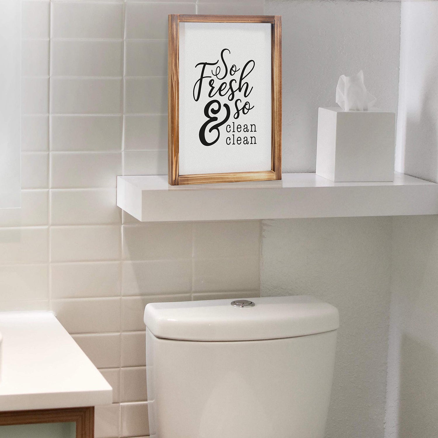 So Fresh And So Clean Sign 11x16 Inch, Farmhouse Bathroom Decor Wall, So Fresh So Clean Wall Art, Small Bathroom Sign Rustic Farmhouse Bathroom Wall Decor Funny Bath Room Sign with Wood Frame