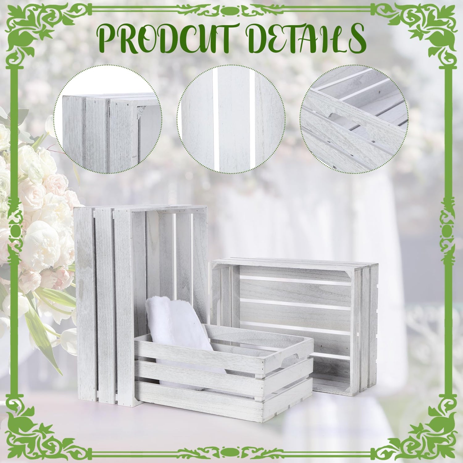 The rustic white color of the wooden boxes not only complements most interior decorations but also adds a rustic charm to your space. Its visually pleasing, natural wood grain accents enhance the elegance of most rooms, thus meeting your style and taste preferences beautifully.