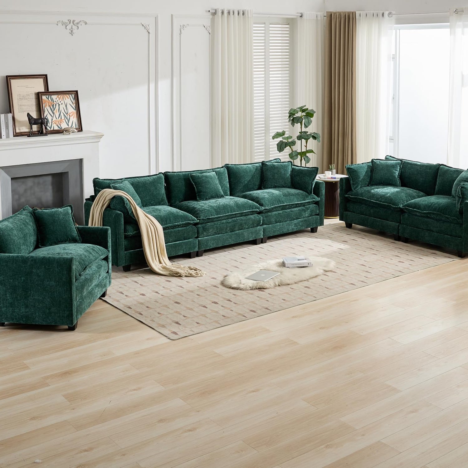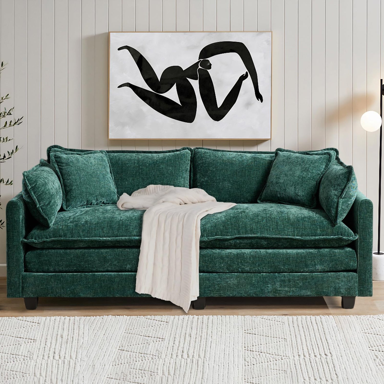 SoarFlash 71.6" Chenille Sectional Sofa, Comfy Modular Loveseat Sofa, Modern 2-Seat Couch Deep Seat Sofa Set for Living Room,Green