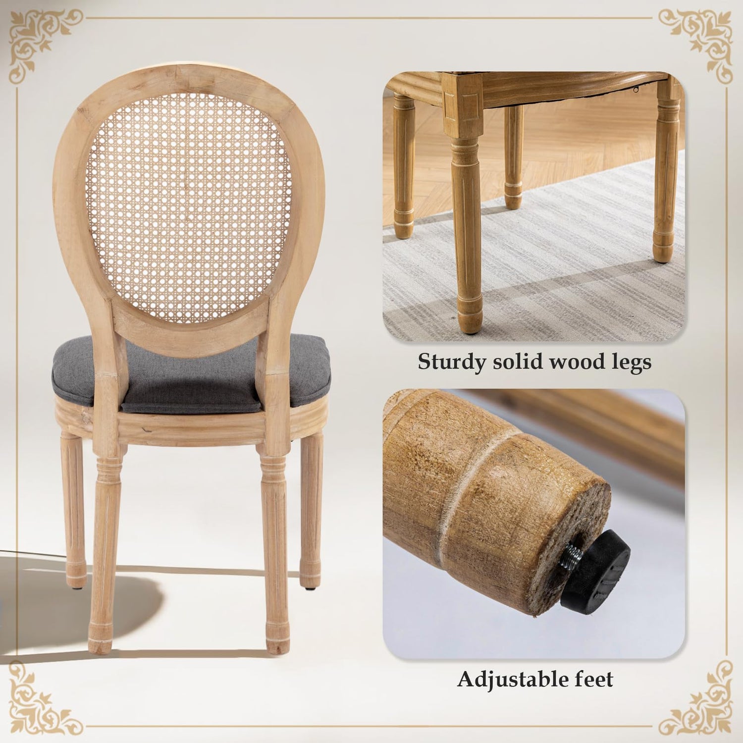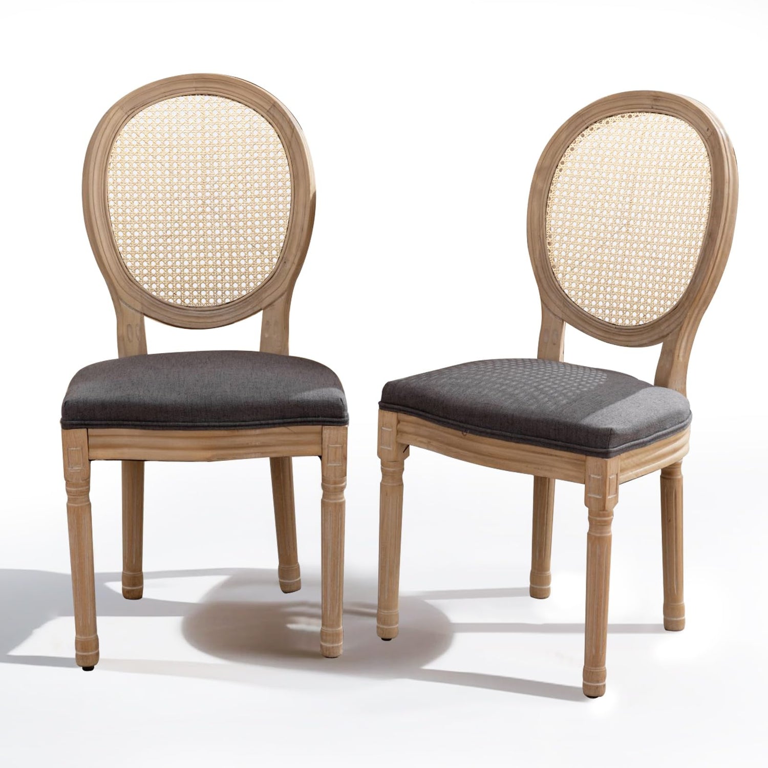 SoarFlash French Dining Chairs Set of 2, Vantage Dining Chair with Round Back, Wood Leg Farmhouse Country Rattan Dining Chair for Kitchen,Bedroom,Deep Grey