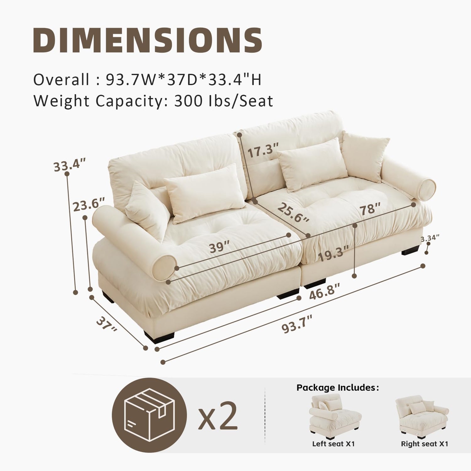SoarTalent 93.7" Oversized Modular Sectional Sofa 2-Seater Loveseat Cloud Couch with Pillows and Overthick Cushion for Living Room,Home Theater,Apartment,Velvet,Beige