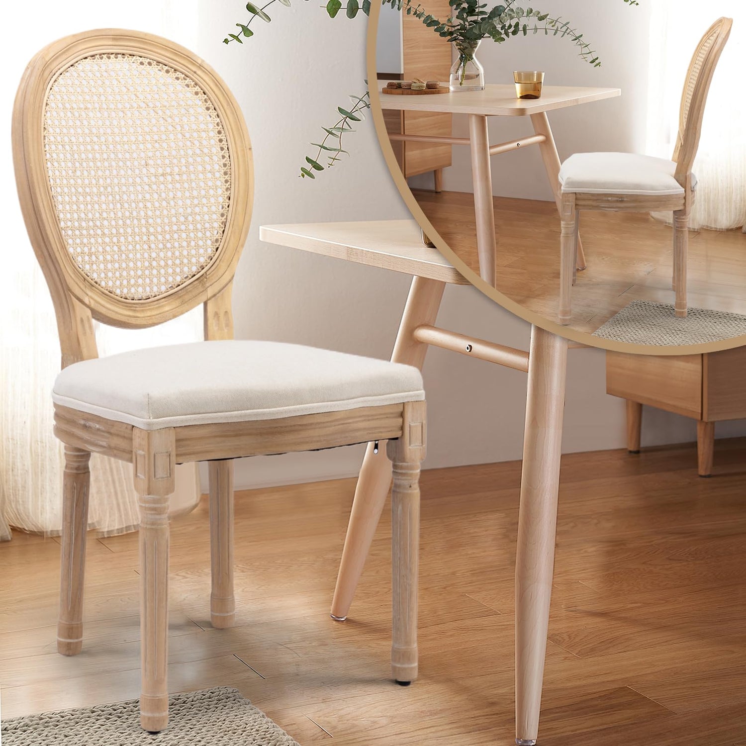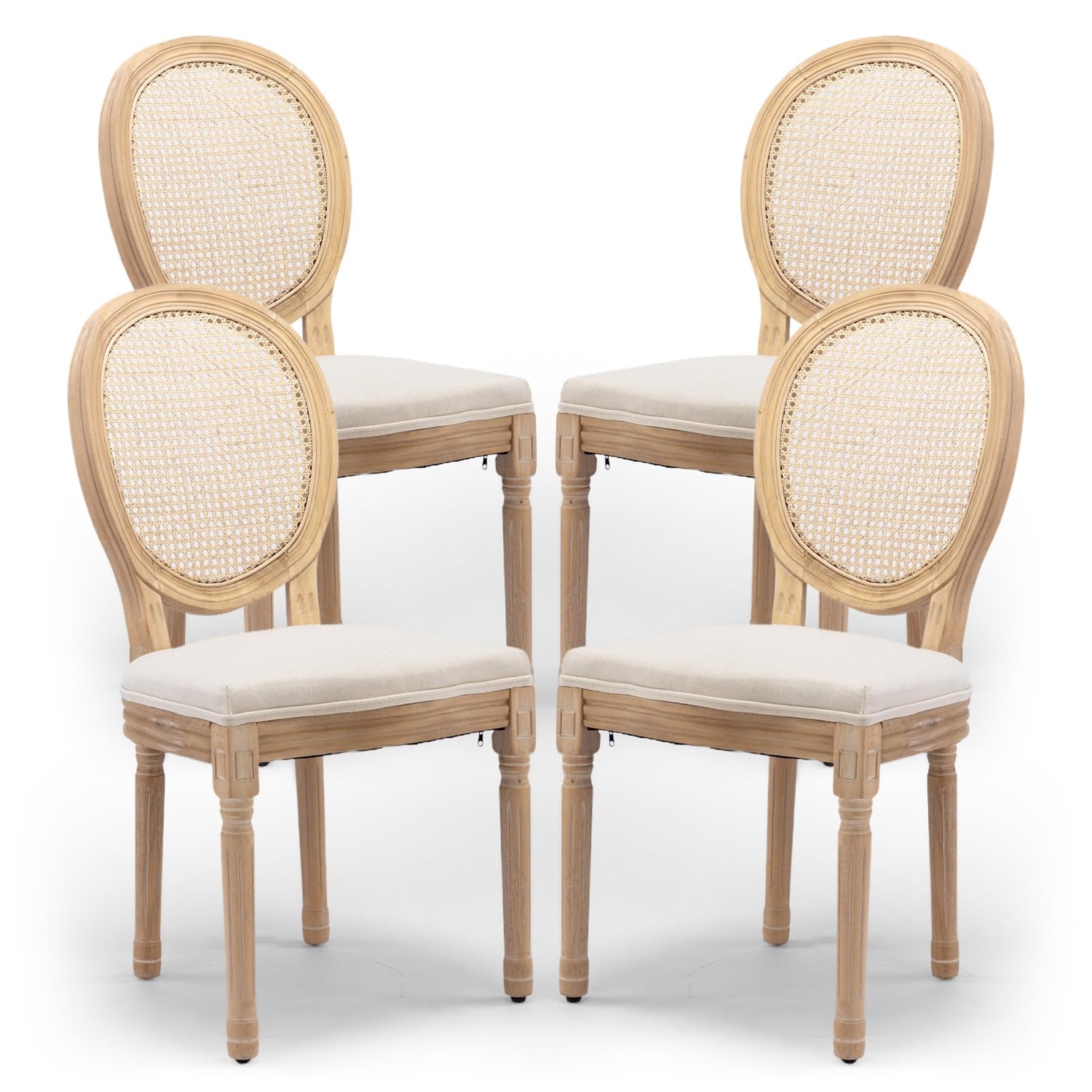 SoarTalent Rattan Back Upholstered Dining Chairs Set of 4 French Country Oval Kitchen Side Chairs with Wood Legs for Dining Room, Kitchen, Restaurant(Beige-Rattan)