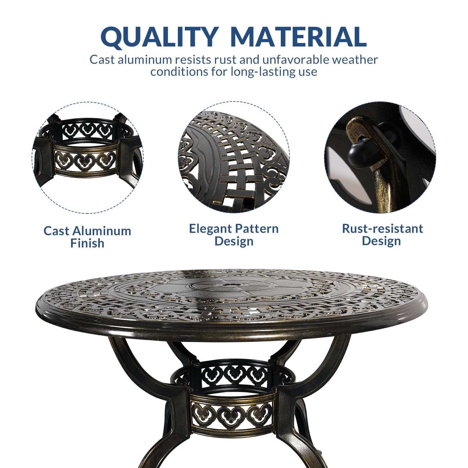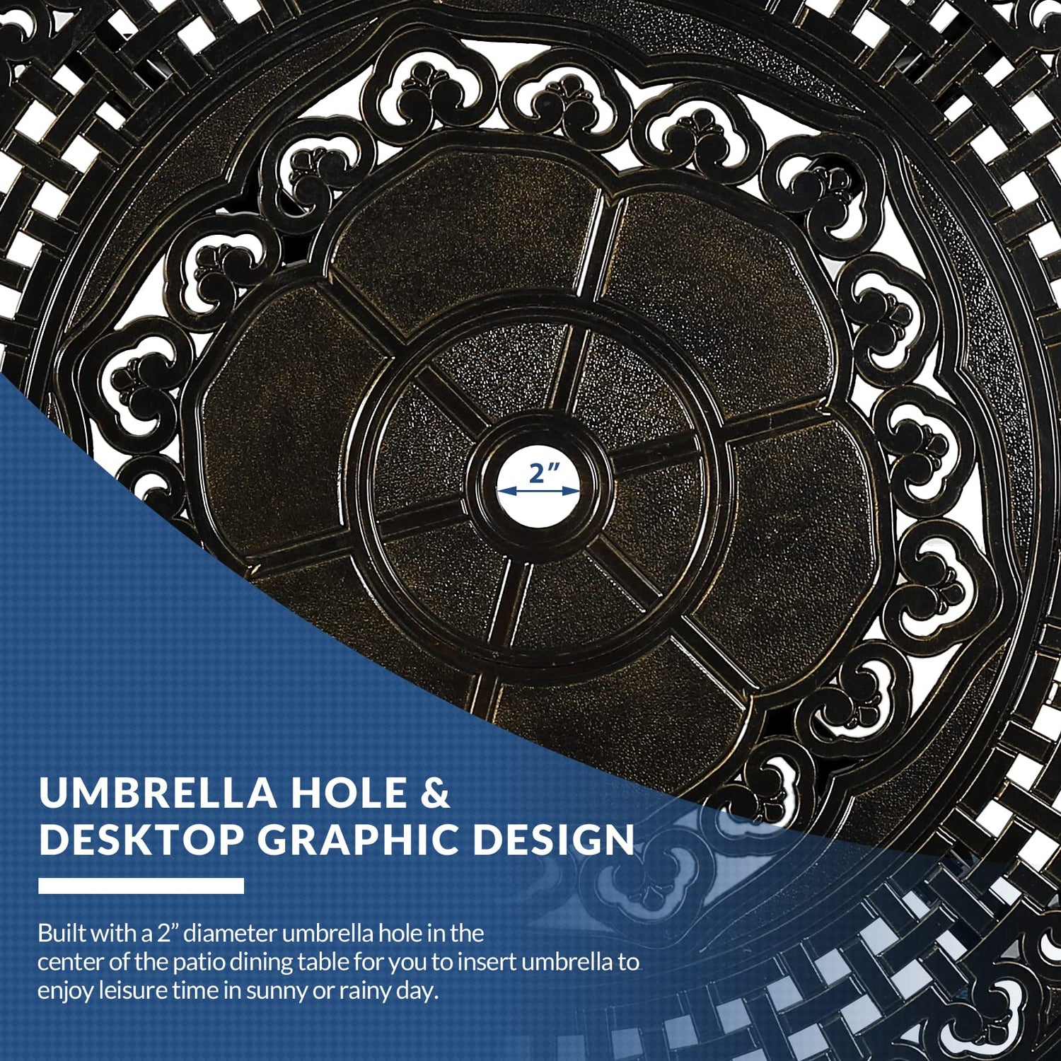 - 【ADD AN UMBRELLA】: Built with a 2" diameter umbrella hole in the center of the table to add a patio umbrella for shade (umbrella not included).