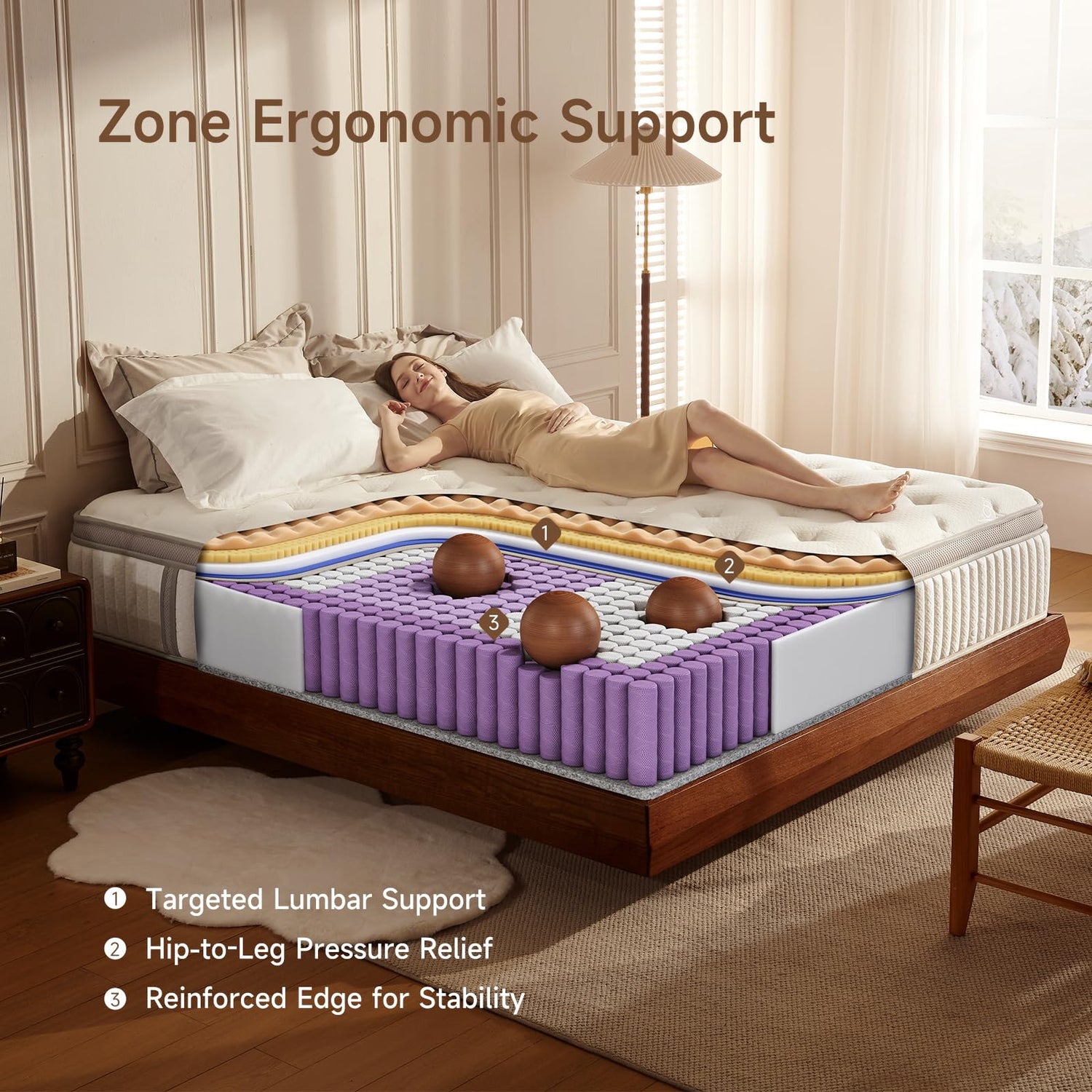 - 【Comfortable Hybrid Mattress Queen】Get the best of both worlds with our hybrid design: individually wrapped coils for bounce & support + plush memory foam for pressure relief. Perfect for cminimizes motion transfer.