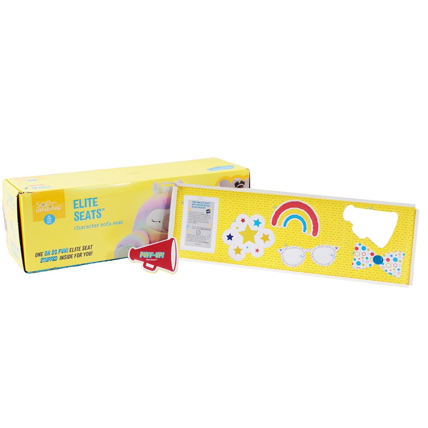 - EASY 3-STEP COMPRESSED TO PUFF: Comes with an interactive insert with an easy 1-2-3 step guide on making sure your new Elite Seat reaches its full PUFF-tential once removed from its itty-bitty box! Also includes cut-out props for that perfect photo-op!