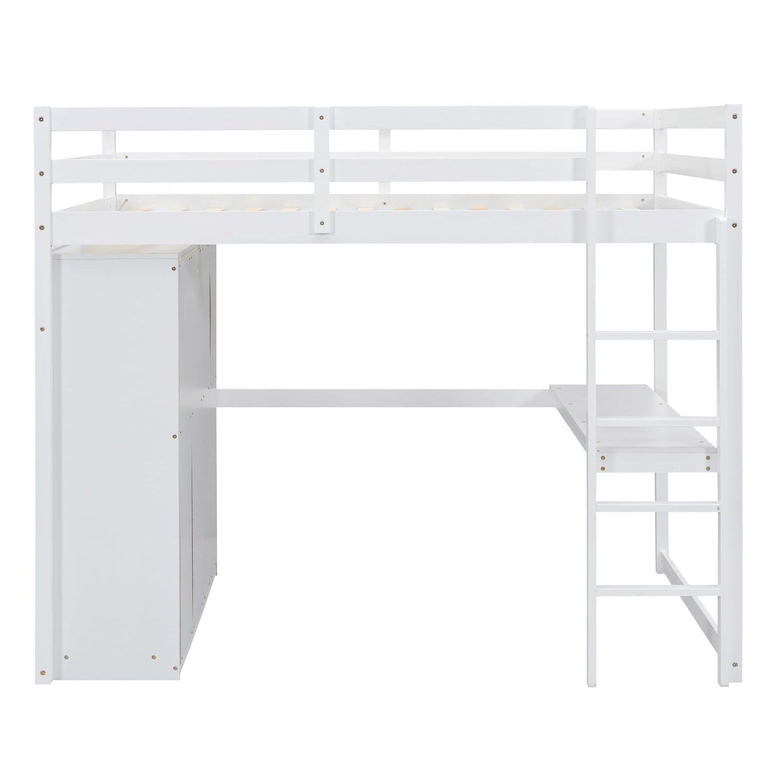 SOFTSEA Space-Saving Full Size Loft Bed with Integrated Desk, Wardrobe, and Storage Drawers
