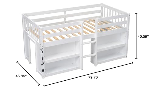 Softsea Twin Low Loft Bed with 2-Tier Shelves & LED Light in White