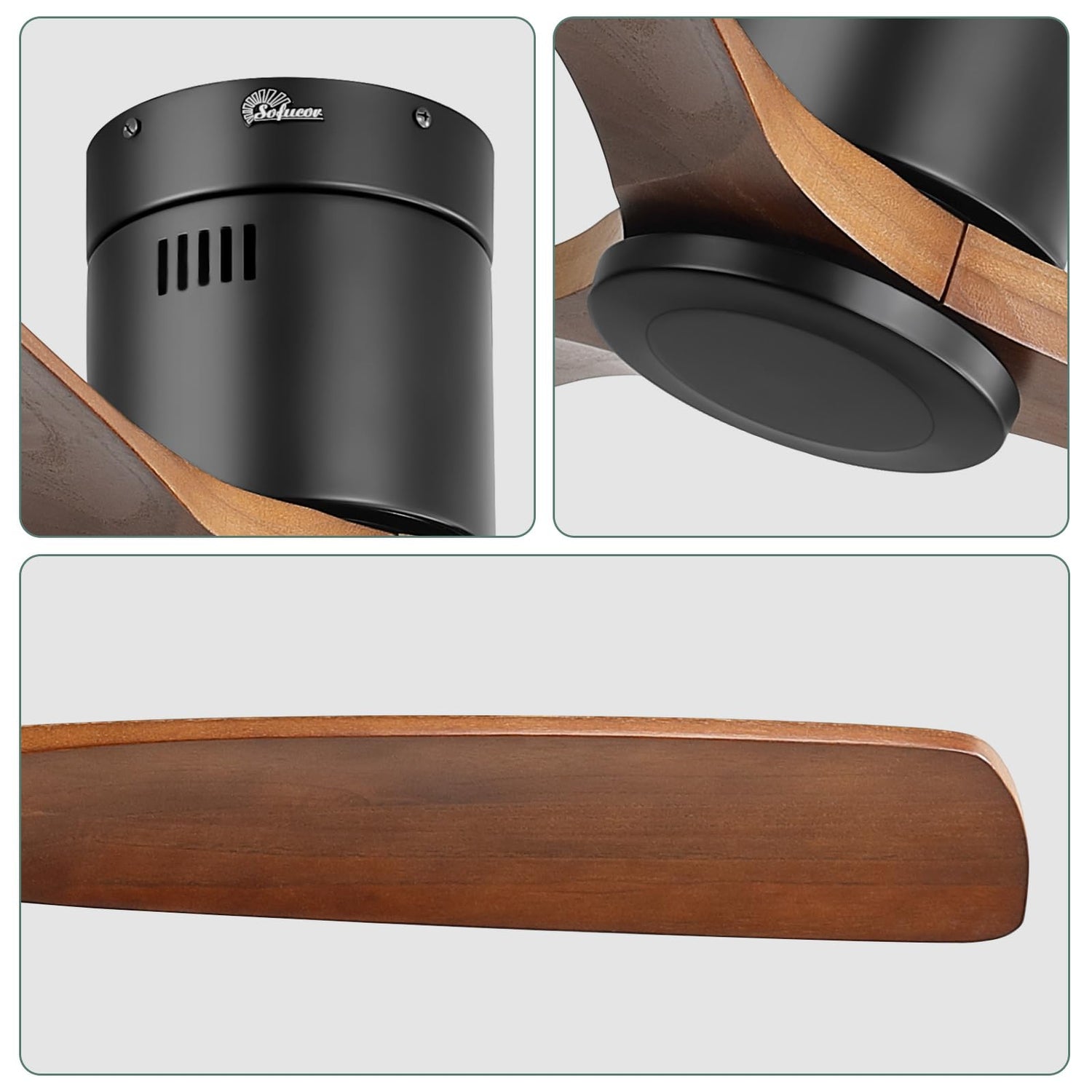 Sofucor 52 Inch Ceiling Fan Without Lights Flush Mount Ceiling Fan with Remote Control, Wood Blades Modern Outdoor Ceiling Fan No Light for Bedroom/Farmhouse/Patio/Indoor