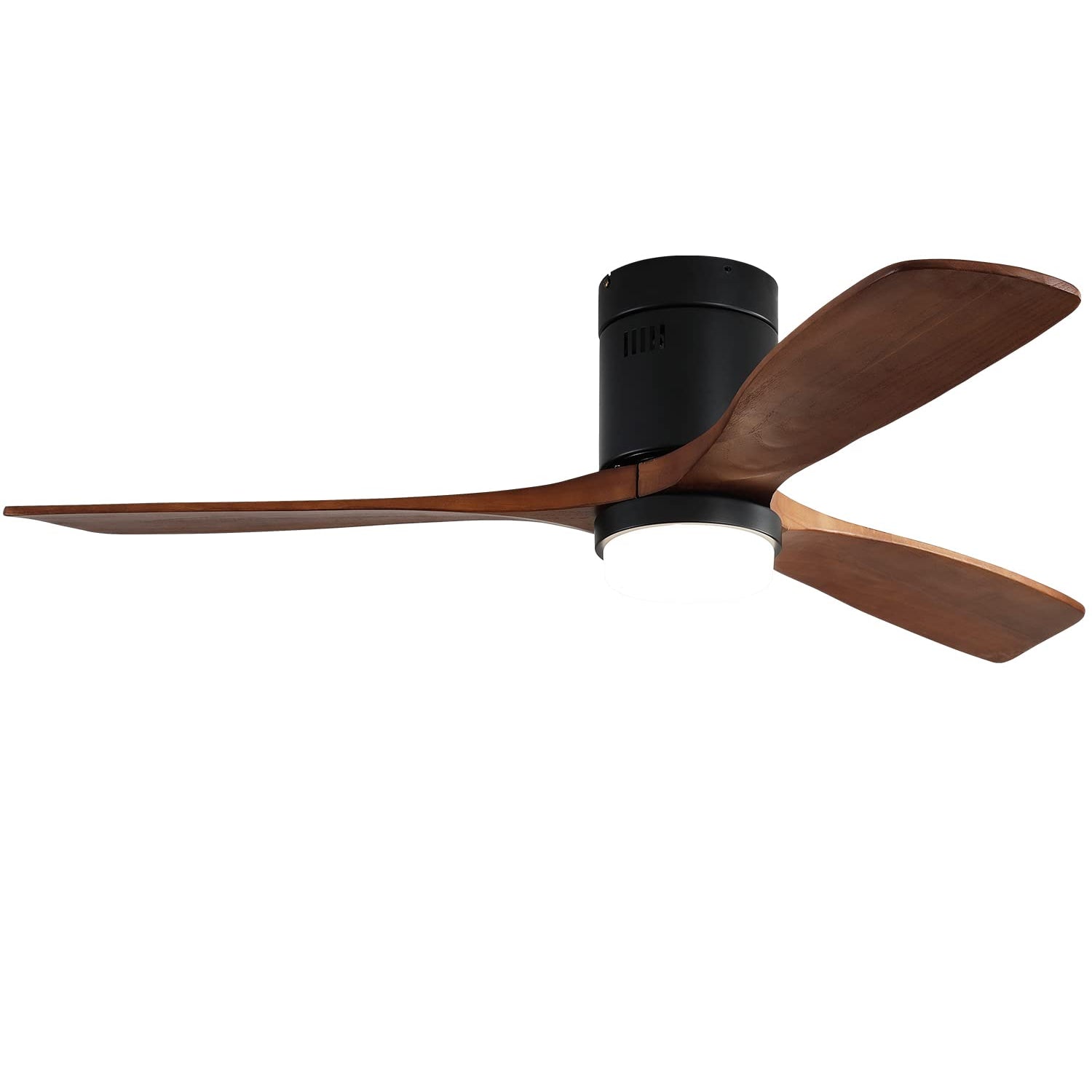 - 【Flush Mount Ceiling Fan】The low profile ceiling fan with light blades are made of solid wood - stylish brown shell, modern acrylic lampshade. Low profile flush mount ceiling fan, making it easier for you to install.
