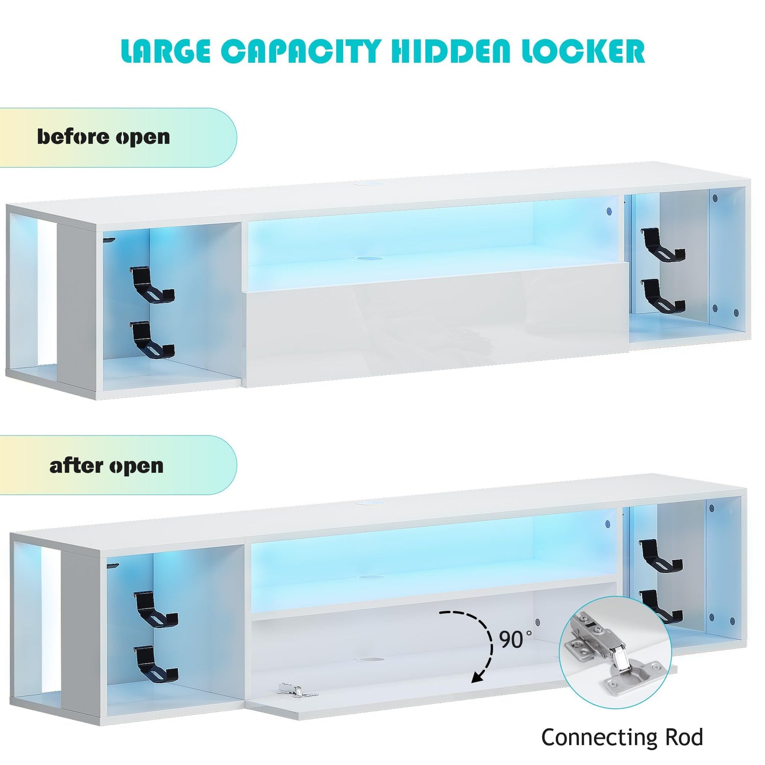 - 【SPACE-EFFICIENT WALL MOUNTED DESIGN】 Designed with functionality in mind, this TV stand offers ample storage space with its multiple shelves and compartments. Easily organize and store your media devices, gaming consoles, DVDs, and other entertainment essentials, keeping your living room clutter-free and organized.