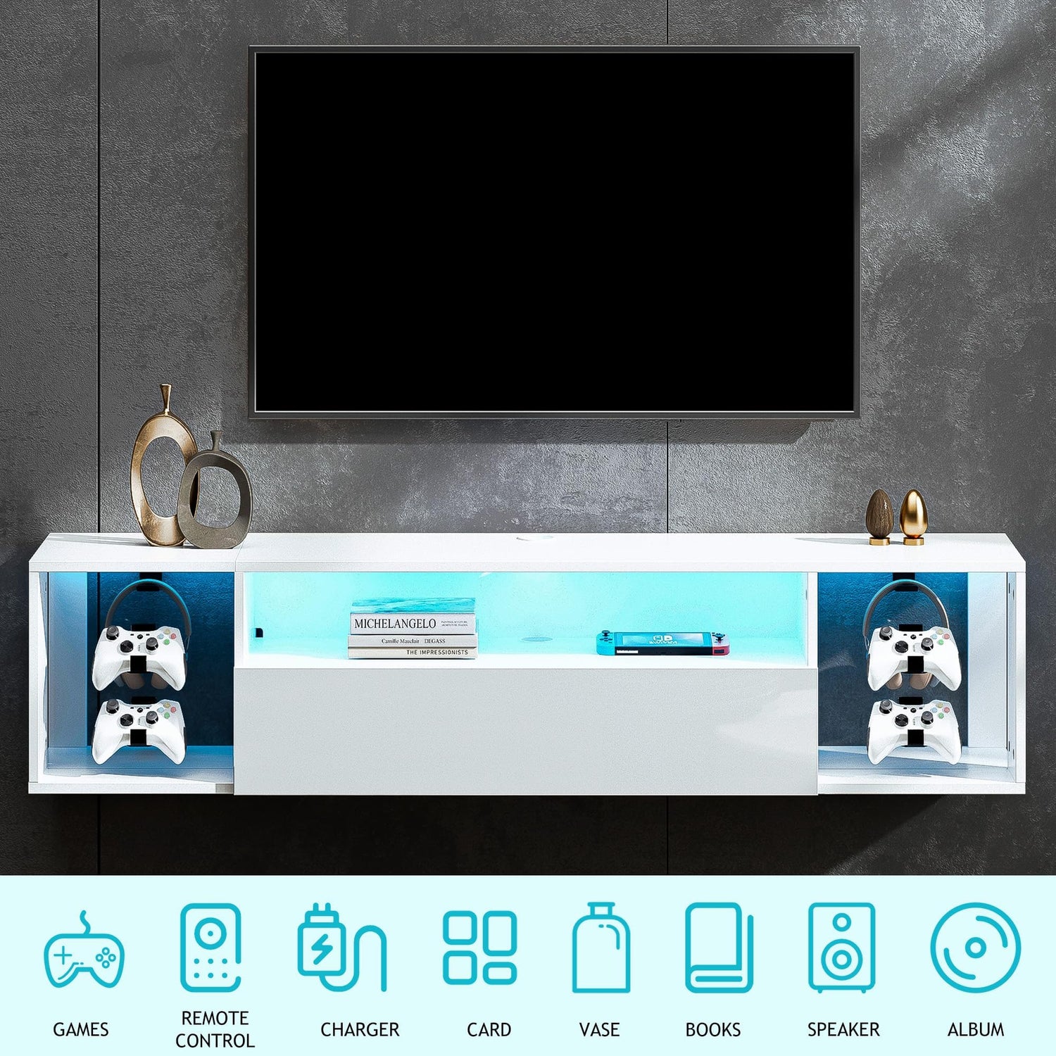 - 【FLOATING TV STAND WITH VIBRANT LED LIGHTS】 The sogesfurniture 55'' White TV Stand boasts a sleek, contemporary design that enhances any living room decor. Its floating, wall-mounted structure creates a clean, minimalist look while maximizing floor space, making your room feel more open and spacious.