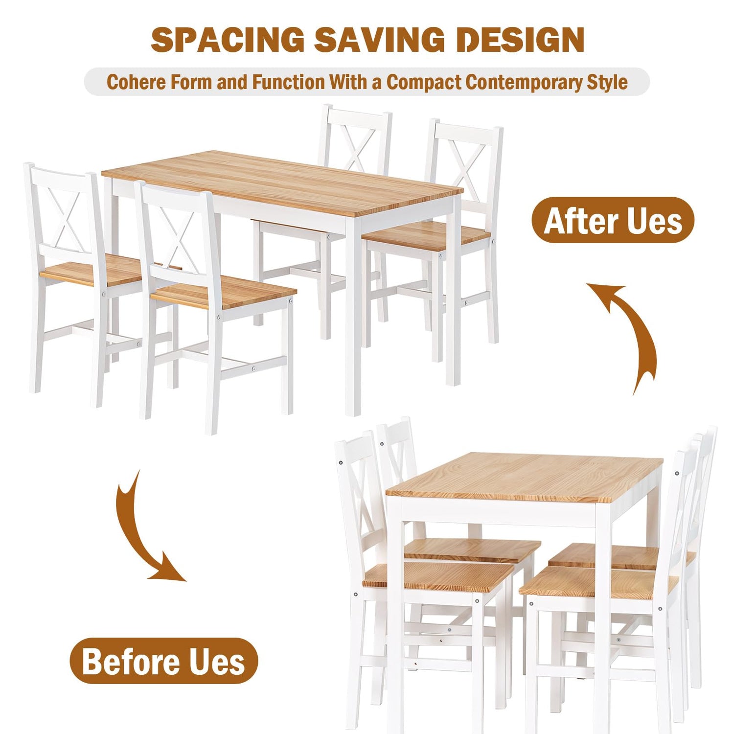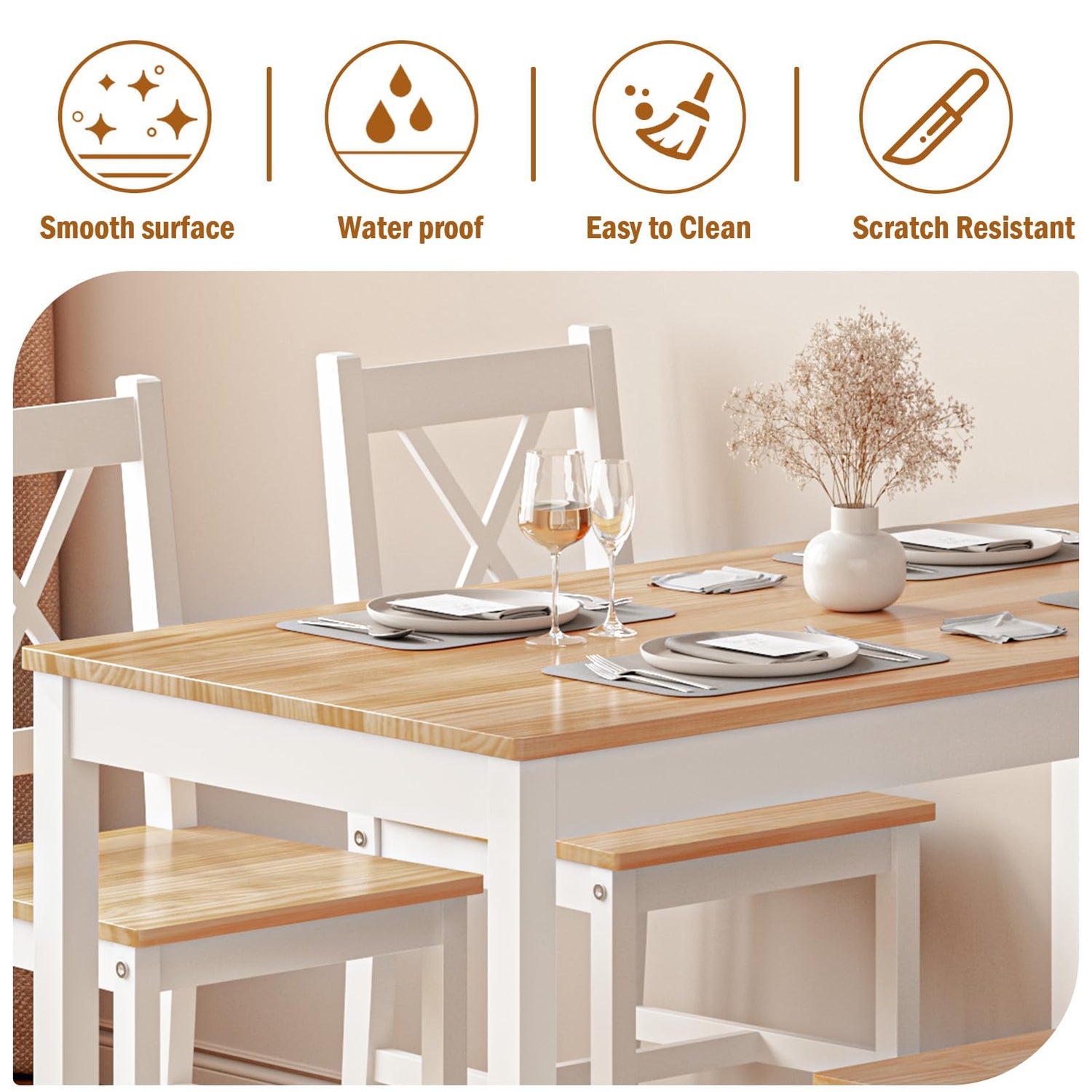 SogesHome 5-Pieces Dining Table Set, Kitchen Table and 4 Chairs for Home, Kitchen Dining Room Table Set for Home, Restaurant, Oak&White