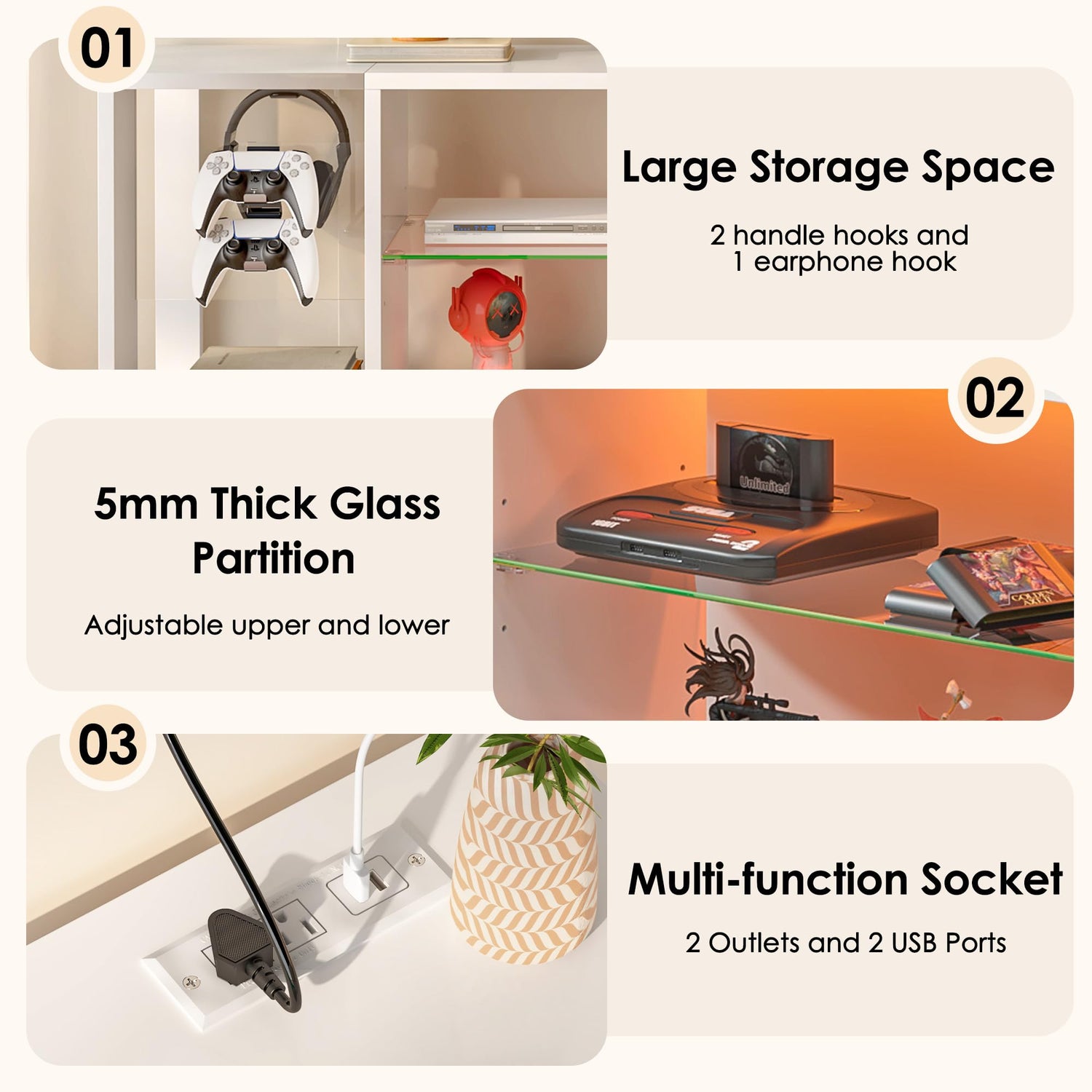 - 【STABLE POWER OUTLETS】This entertainment center offers 2 outlets and 2 USB ports to ensure you always have the necessary power wherever you place your devices. Easily charge gaming devices, TVs, cell phones and tablets.