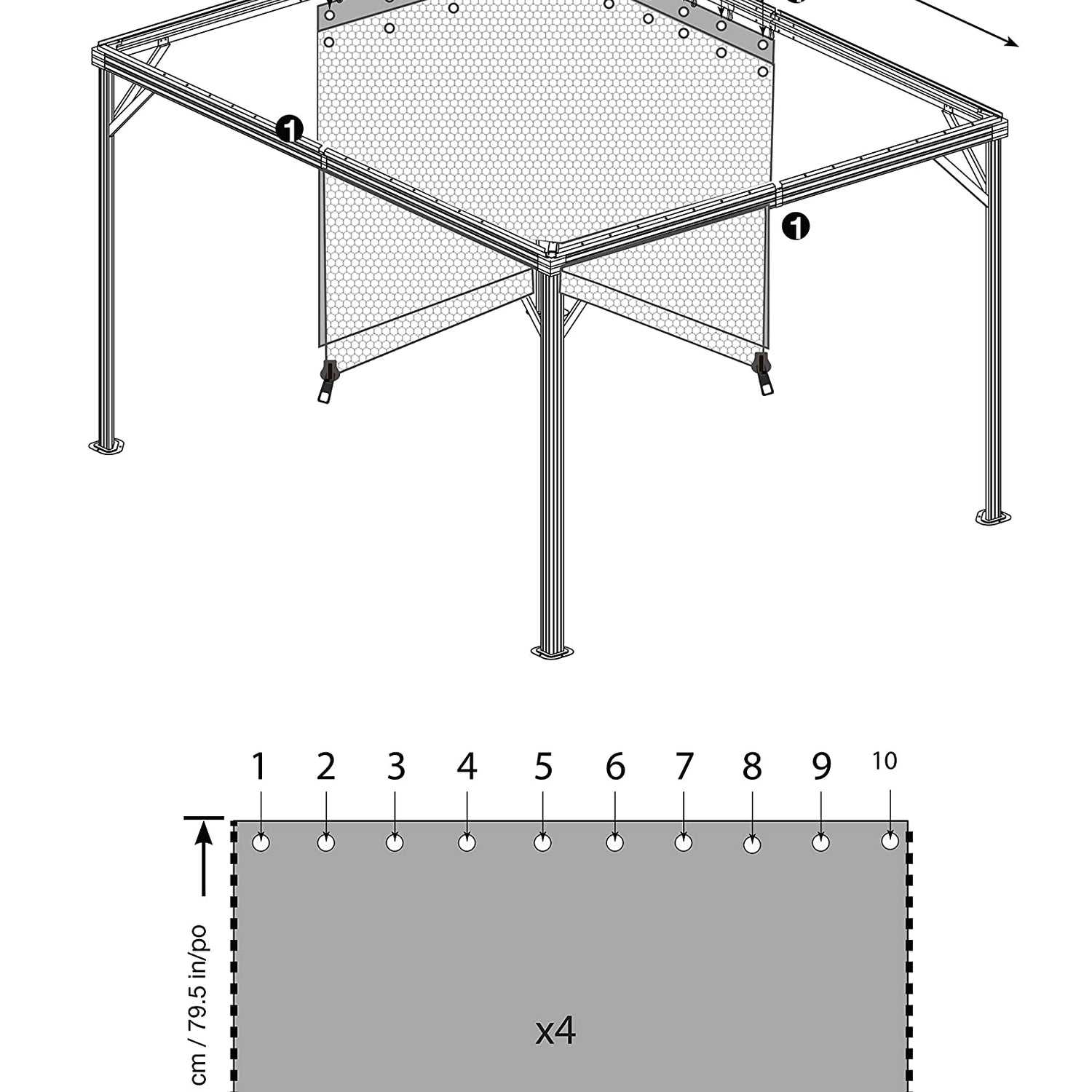 Details: Genova privacy curtains are a perfect complement to your sun shelter of the same name. Made of polyester, they will be more than useful to either block the wind, bring an extra touch of shade if needed or simply give you privacy.